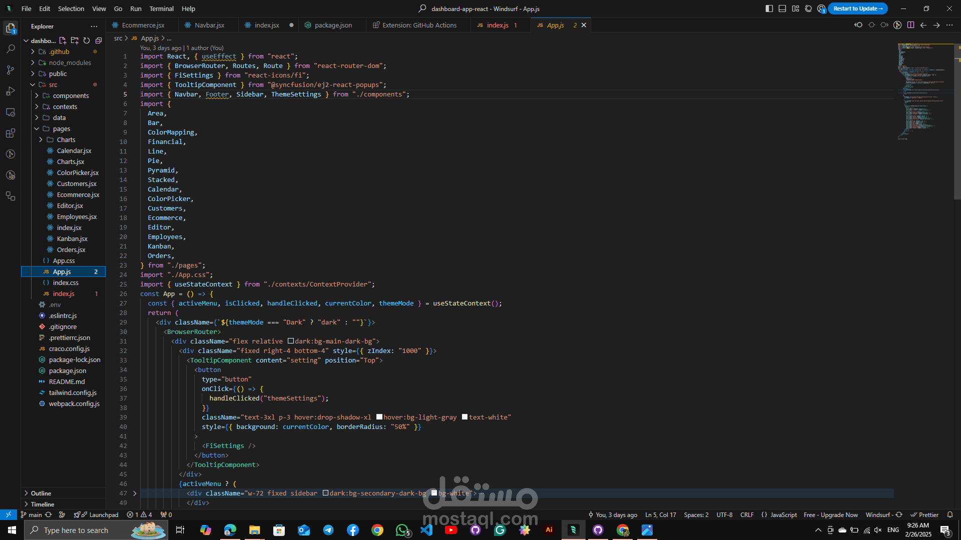 A comprehensive, responsive admin dashboard built with React and Syncfusion, featuring interactive charts, Kanban board, calendar, and theme customization. Designed for efficient data visualization and management with a sleek, modern UI.