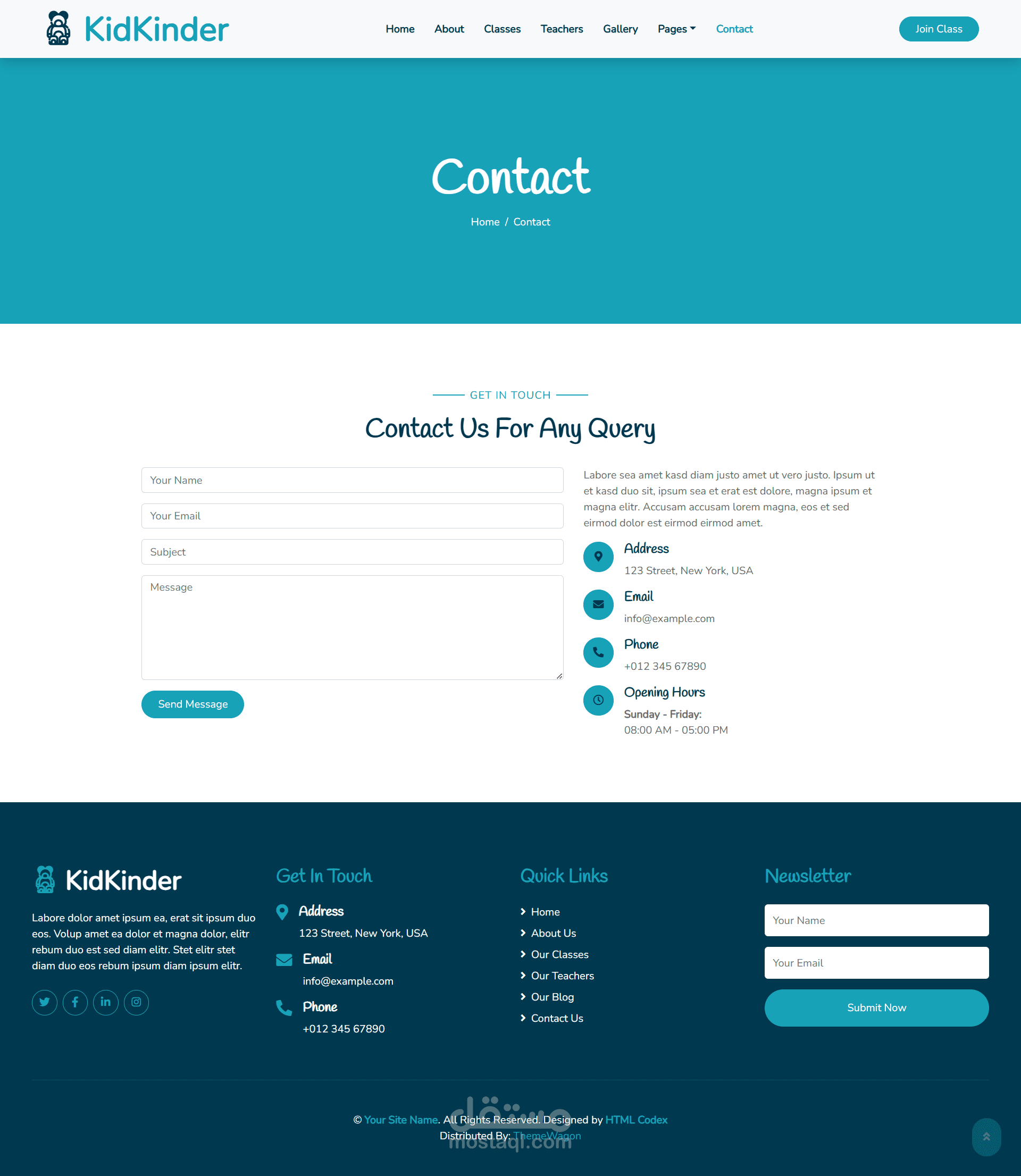 تطوير صفحات الموقع: تطوير الصفحات الرئيسية (الصفحة الرئيسية، معرض الصور، المدونة، فريق المعلمين، آراء أولياء الأمور) باستخدام HTML, CSS, JavaScript.