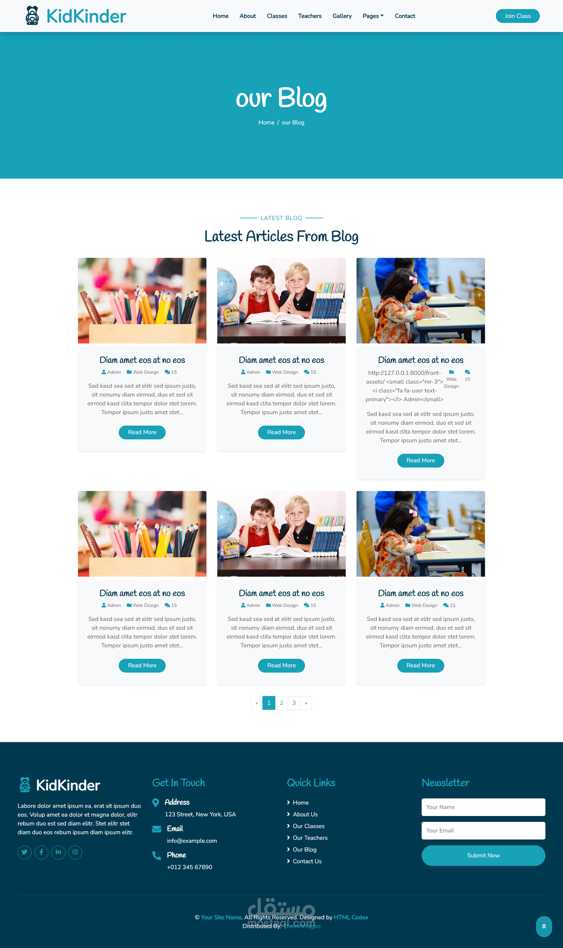 المدونة: تحتوي على مقالات تعليمية حديثة ونصائح للآباء، مع إمكانية تصنيف المقالات ووظيفة البحث.