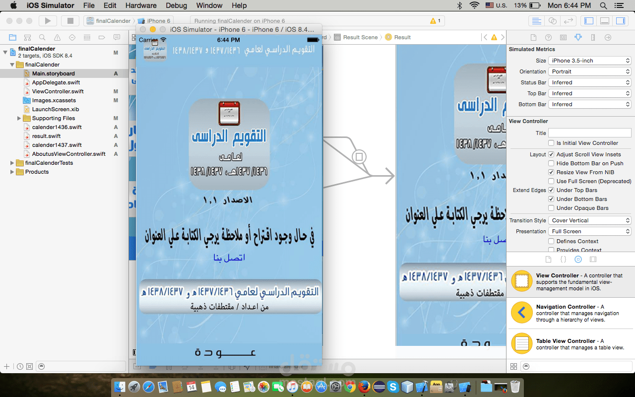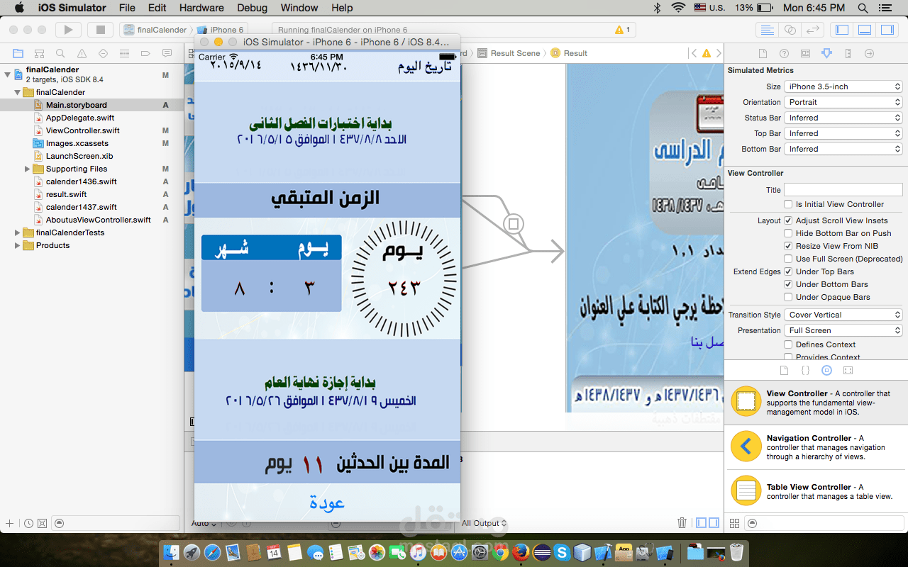 تطبيق يحسب الفترة بين حدثين بالايام ويعرض التاريخ الميلاد ومايقابله بالتاريخ الهجري يعمل علي جميع اجهزة الايفون تمت برمجته باستخدام xcode و swift programming language