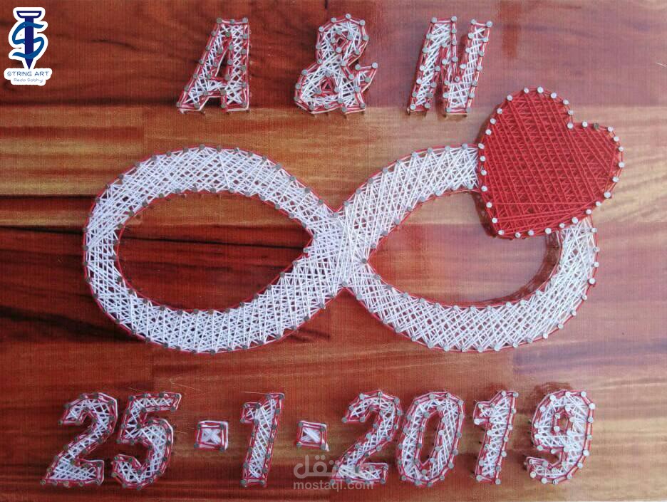 لوجو ل شاب يقوم بصناعة اي شكل عن طريق المسامير والخيوط علي الواح خشبية