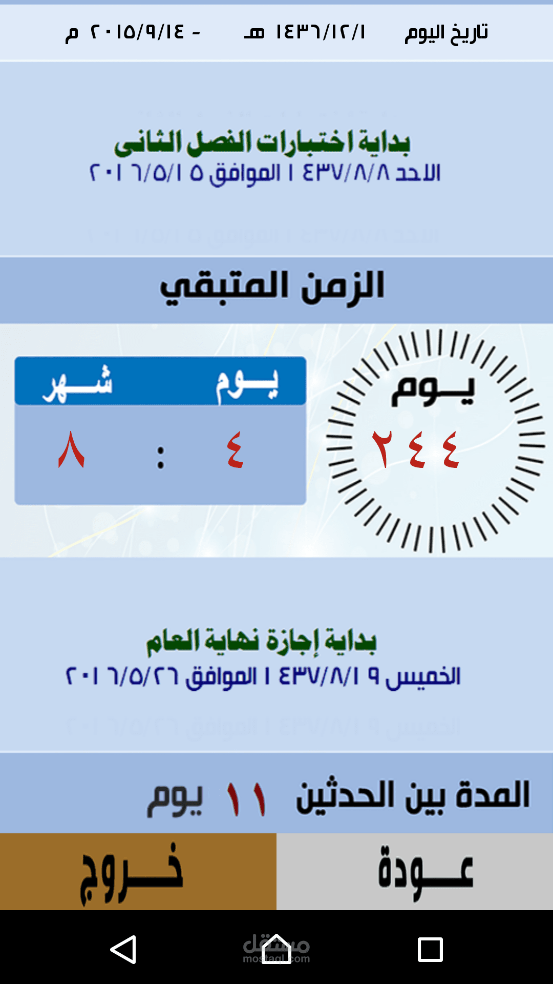 تطبيق يحسب الفترة بين حدثين بالايام ويعرض التاريخ الميلاد ومايقابله بالتاريخ الهجري يعمل علي جميع اجهزة الموبايل الاندرويد تمت برمجته باستخدام android studio and java