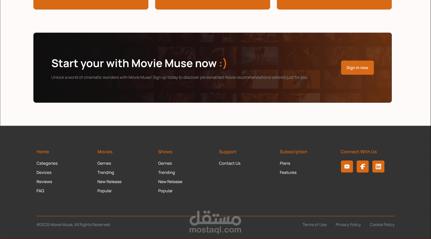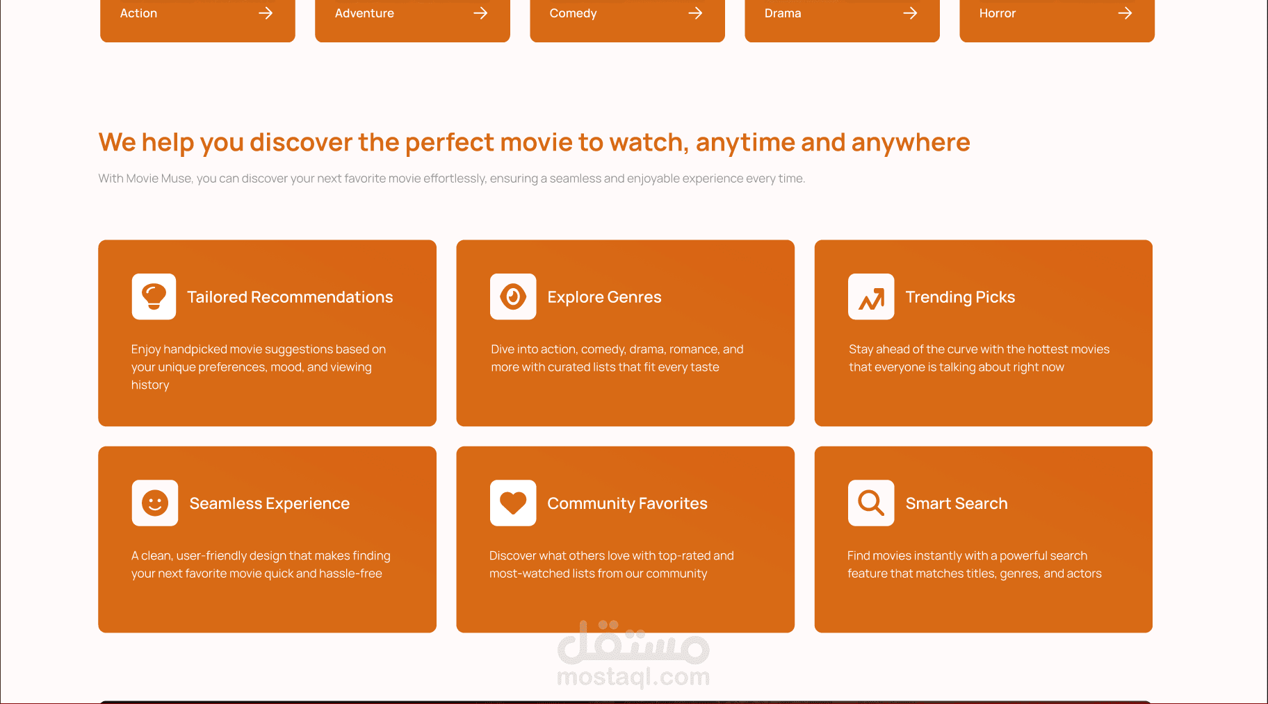 هذا التصميم يُعد خطوة أولى نحو إنشاء موقع يعيد تعريف كيفية اكتشاف الأفلام، مع التركيز على تقديم تجربة مستخدم ممتعة وجذابة.