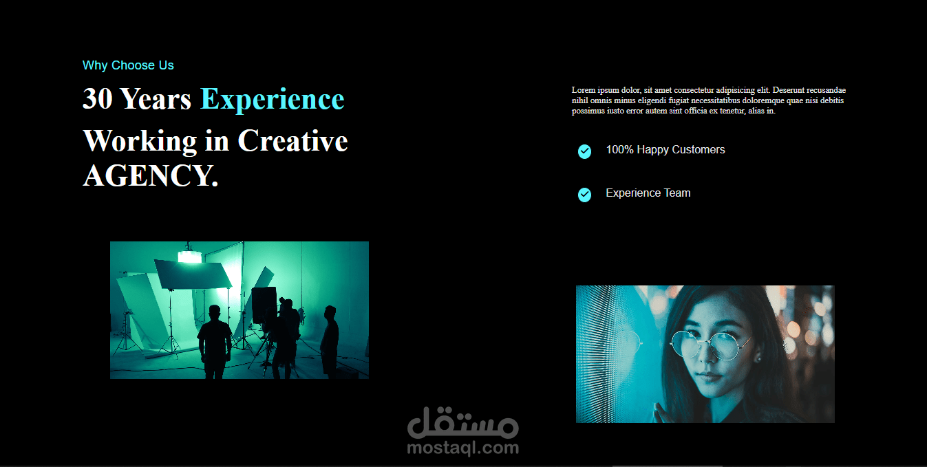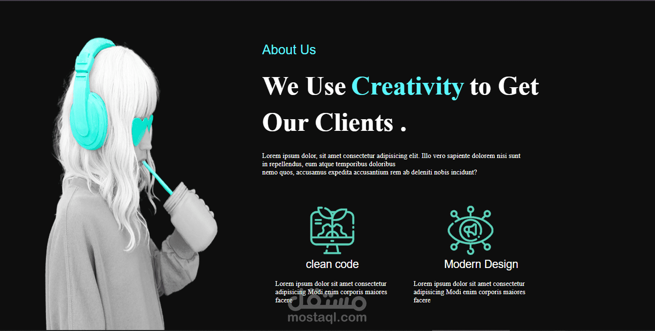 تصميم عصري يناسب وكالات التصميم والشركات الناشئة.