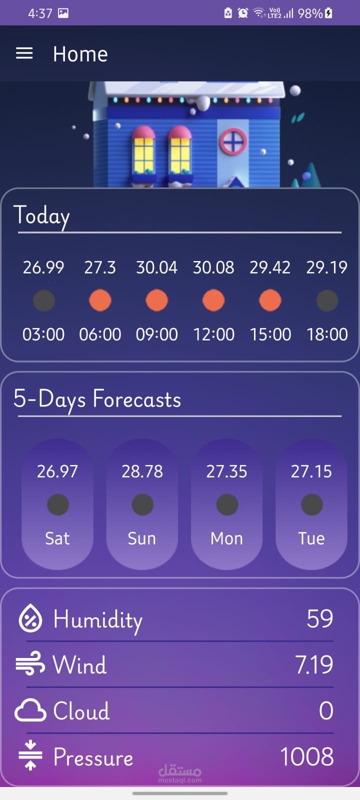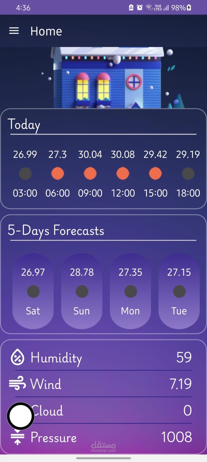 قمت بتطوير تطبيق طقس يعرض توقعات الطقس بشكل دقيق، مع إمكانية تغيير الموقع عبر الخريطة وتحديث البيانات تلقائيًا. التطبيق يتميز بتصميم حديث وسهل الاستخدام، مع دعم الوضع الليلي وحفظ التنبيهات داخل التطبيق.