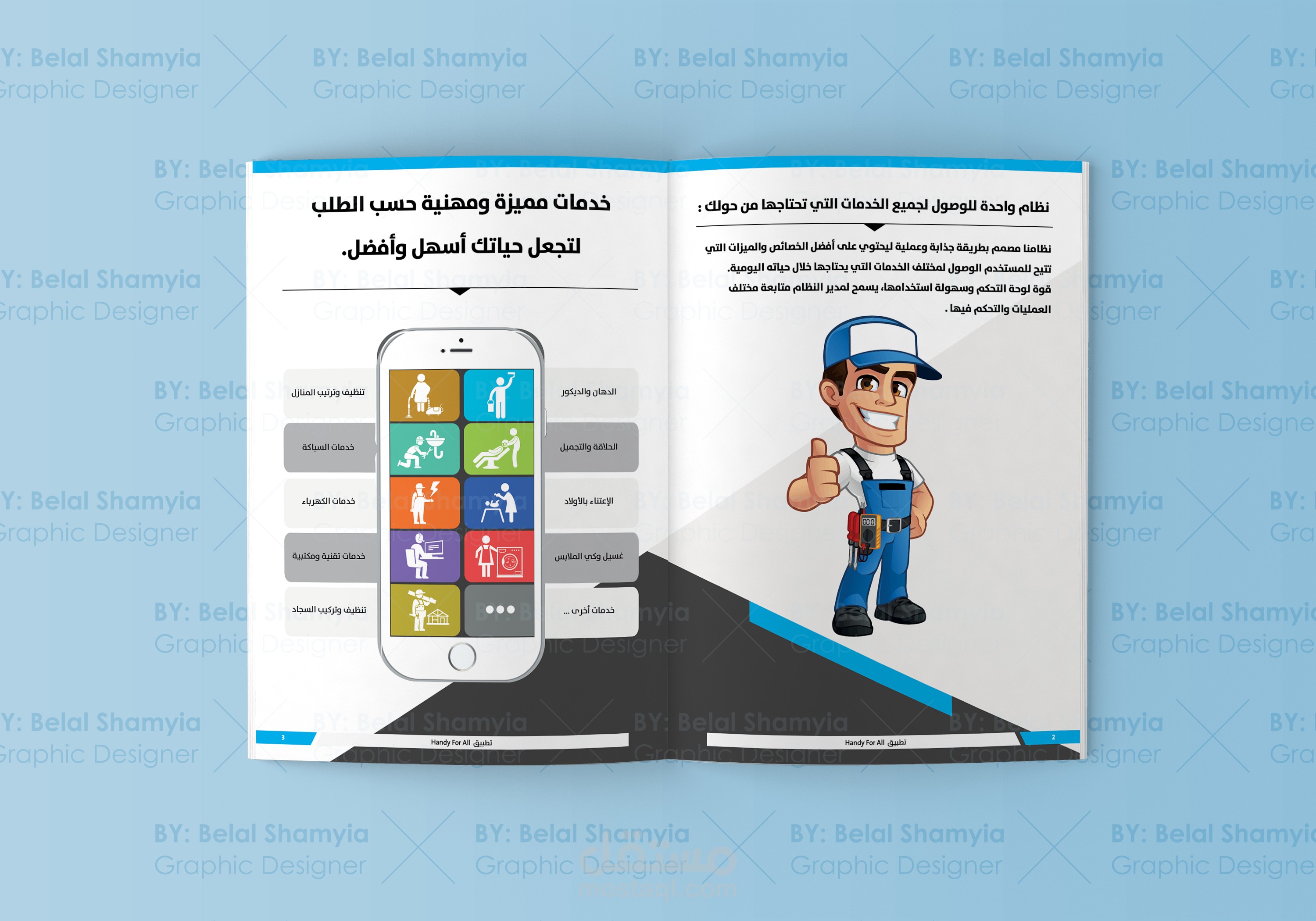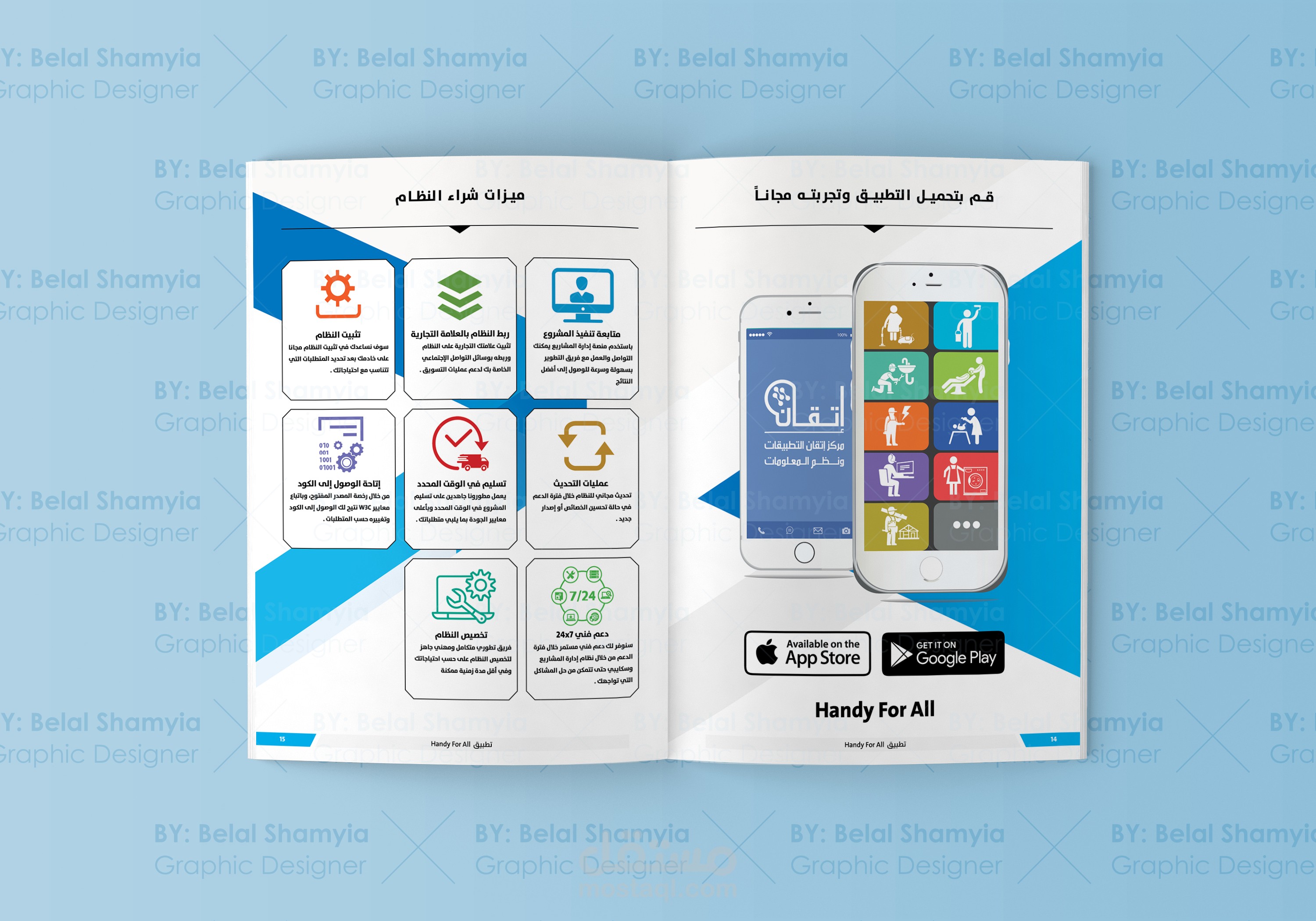 تصميم كتيب تعريفي عن تطبيق خدمة في متناول الجميع لصالح شركة سعودية