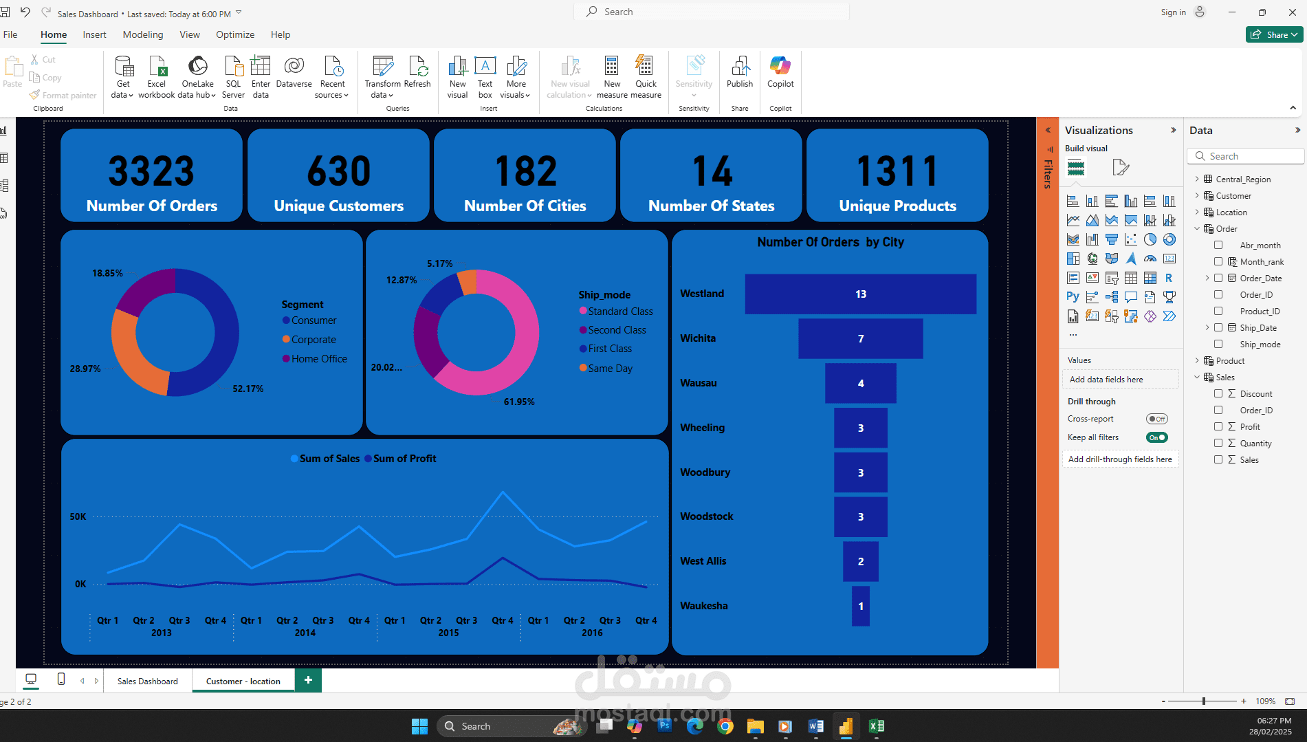 تنضيف و تحليل بيانات مبيعات لشركه بملف Excel باستخدام Power BI و عرضها في صوره Dashboard متفاعله