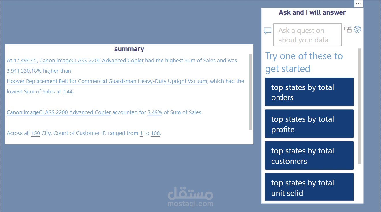 -نظرة على الأرباح والطلبات: إجمالي الطلبات حسب الفئة، والأرباح، والمبيعات بعد الخصم.