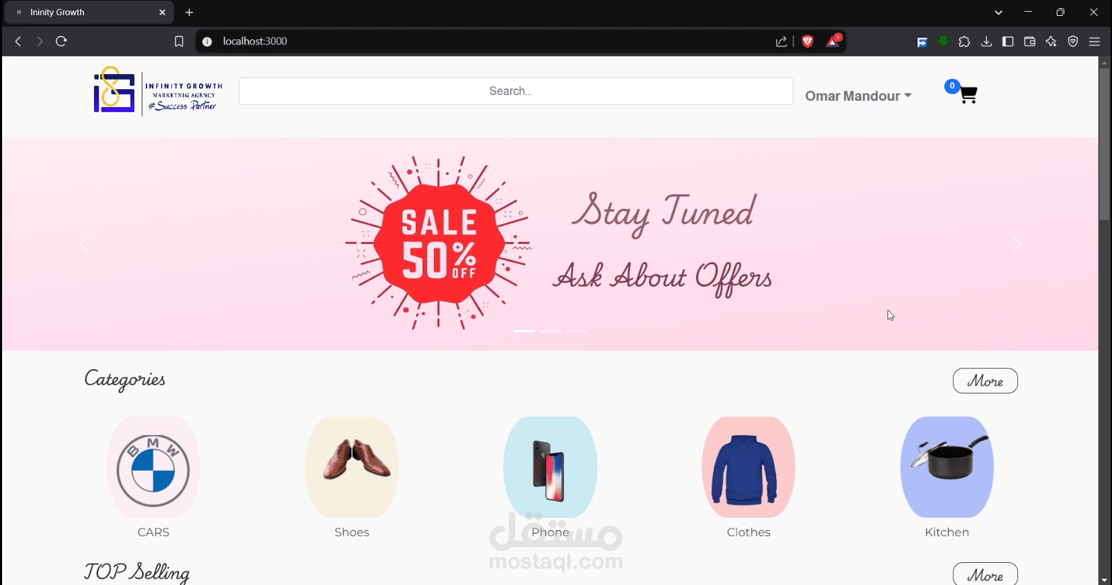 برمجة المتجر باستخدام React (أو أي تقنية مناسبة).