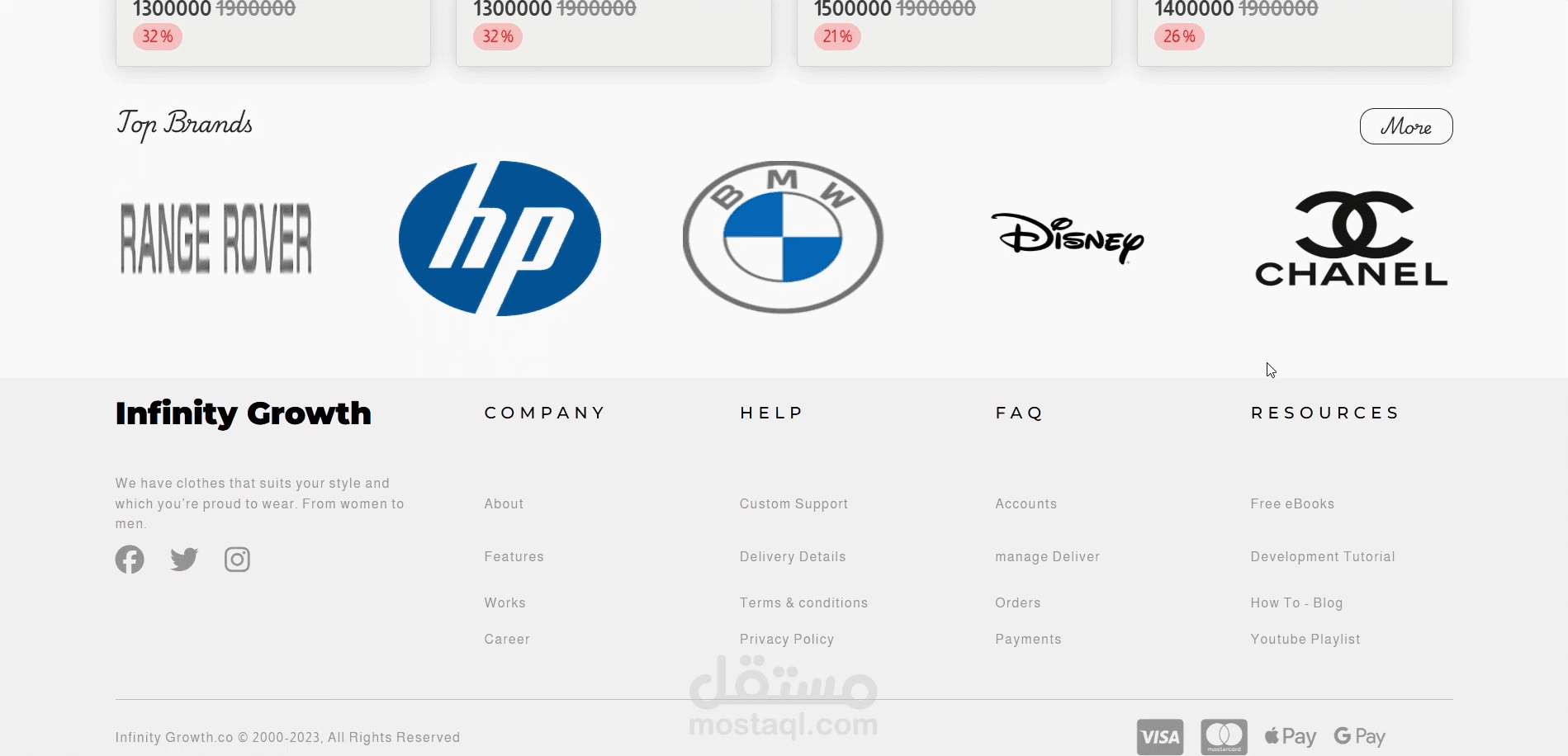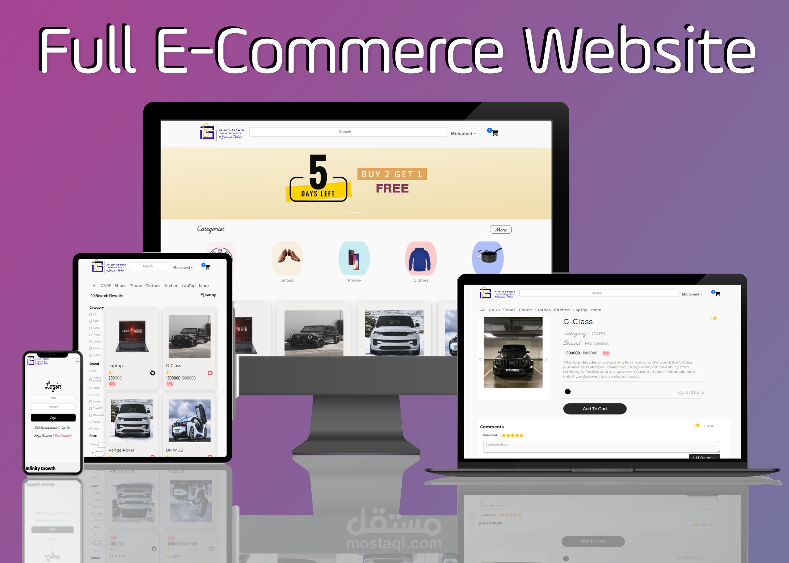 إنشاء صفحات المنتجات، السلة، الدفع، وحساب المستخدم.