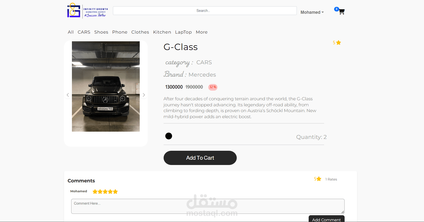 يهدف هذا المشروع إلى إنشاء متجر إلكتروني متكامل لبيع المنتجات عبر الإنترنت، مع واجهة مستخدم حديثة وسهلة الاستخدام، ونظام إدارة منتجات فعال، بالإضافة إلى تكامل مع وسائل الدفع والشحن.