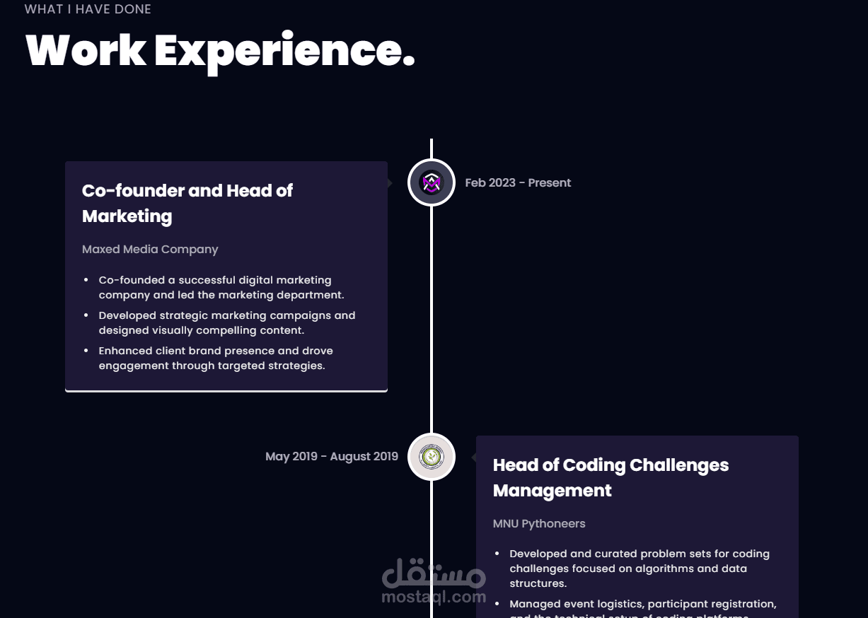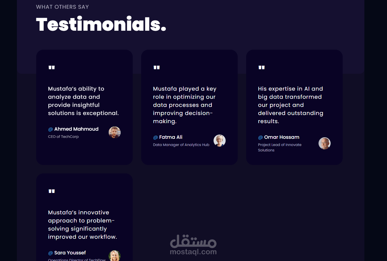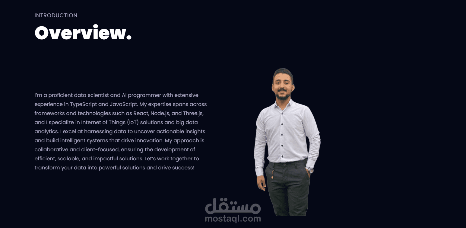 Mustafa Ayman هو موقع شخصي مصمم لعرض مهارات وخبرات مطور ويب بطريقة حديثة ومبتكرة. يتميز الموقع باستخدام تقنيات 3D لخلق تجربة تفاعلية فريدة تجعل التصفح أكثر متعة وانسيابية، مما يعكس الاحترافية والإبداع في التصميم والتطوير.