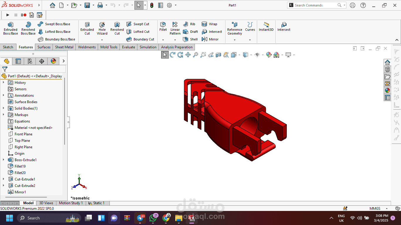 "I designed this part within a week. It took me a lot of time because its dimensions were very small, and I needed to measure and draw it accurately. The client wanted the 3D model to create a mold for it and