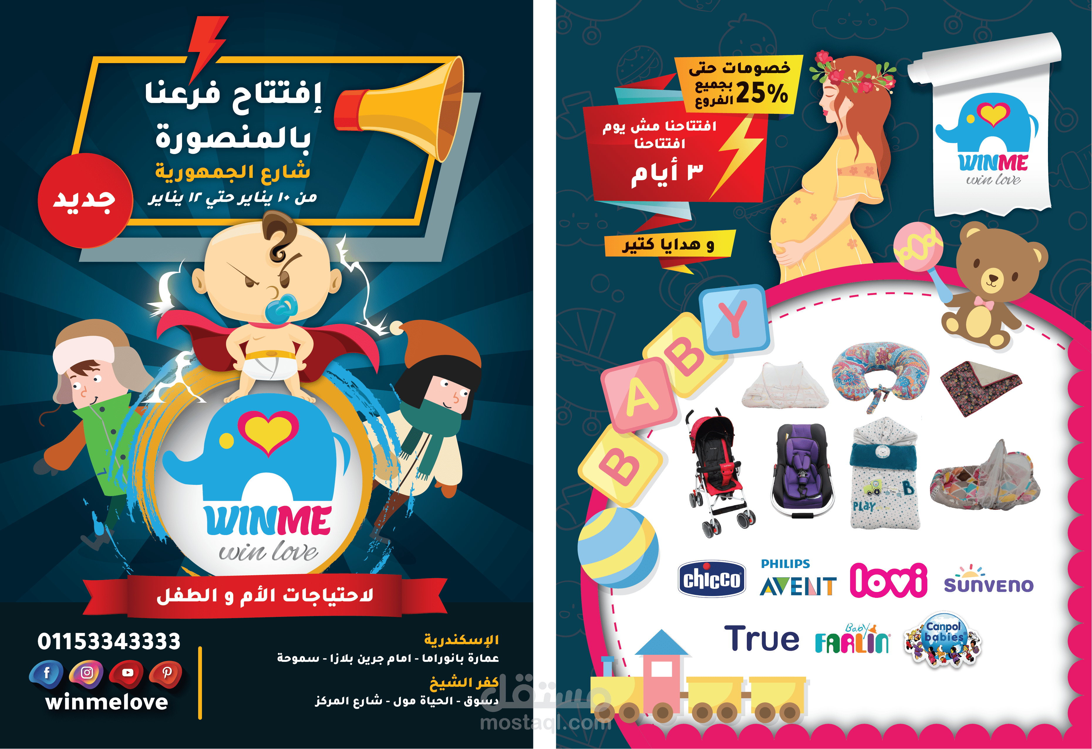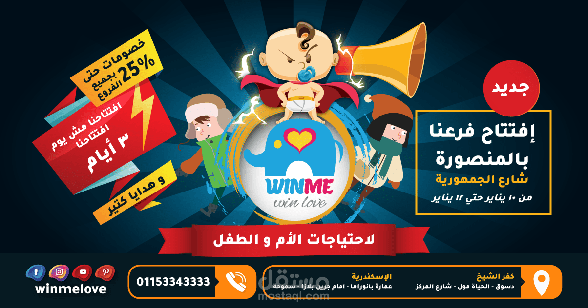 تصاميم سوشيال و فلاير افتتاح شركة لاحتياجات الام و الطفل