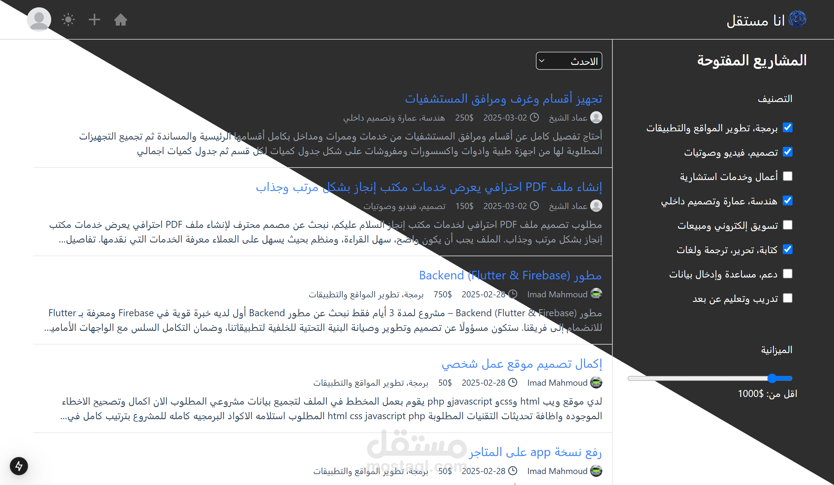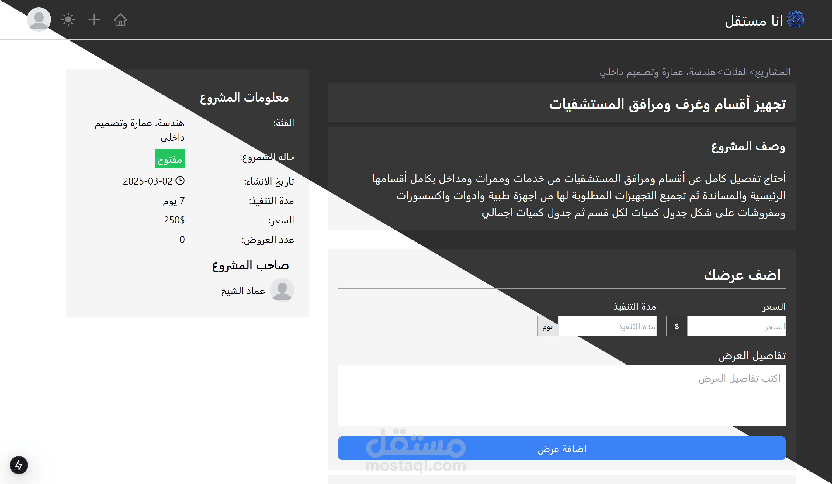 تقديم العروض: يسمح للعمال المستقلين بتقديم عروضهم بناءً على متطلبات المشاريع.