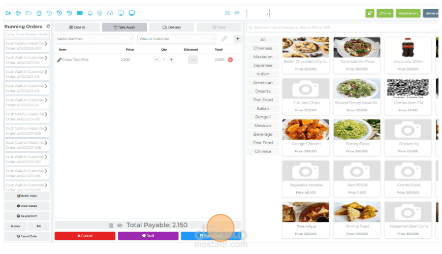 برنامج نقاط البيع للمطاعم يشمل المبيعات والمشتريات وإدارة المخزون من خلال تتبع كميات المواد الخام المستخدمة في المبيعات