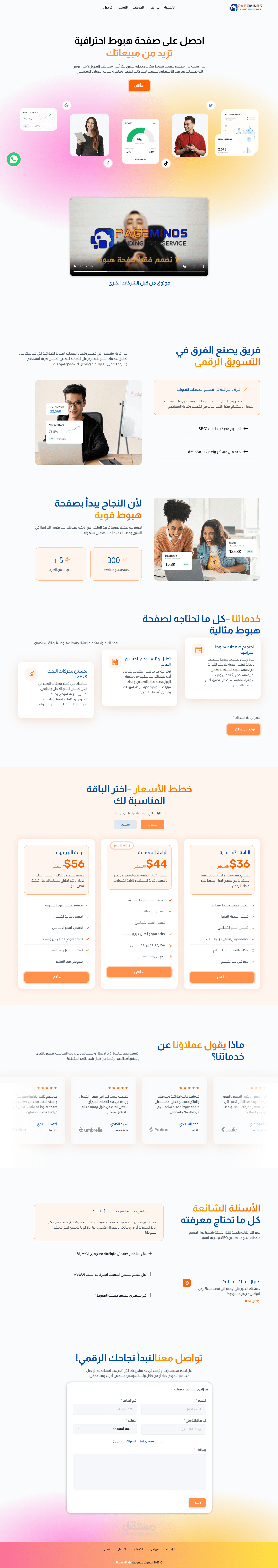 صفحة هبوط تعريفية خاصة بعرض خدمات الشركة مبنية بواسطة ووردبرس Elemetor.
