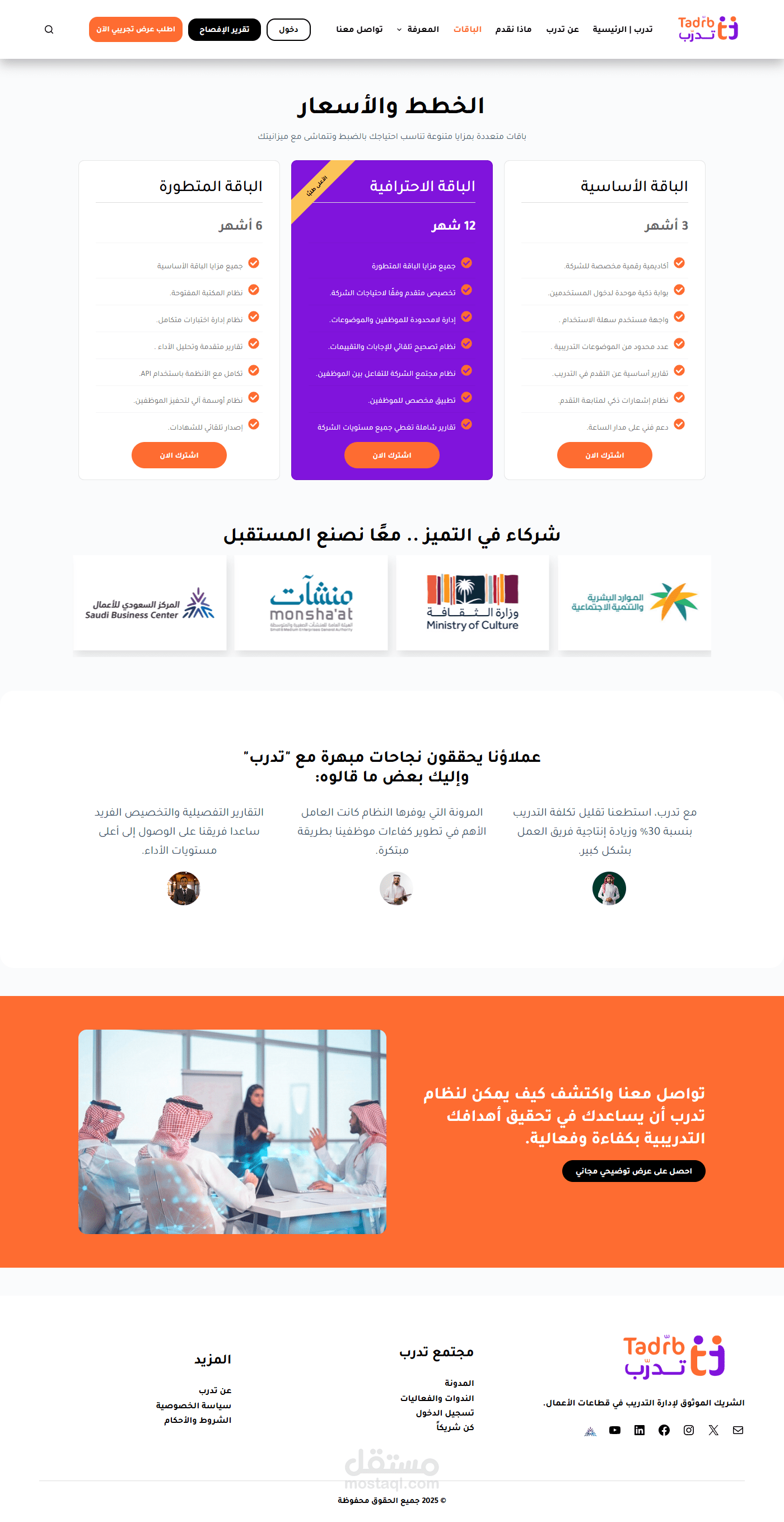 انشاء وتصميم موقع لشركة تدرب السعودية المختصة في إدارة تدريب وتطوير الموظفين في الشركات