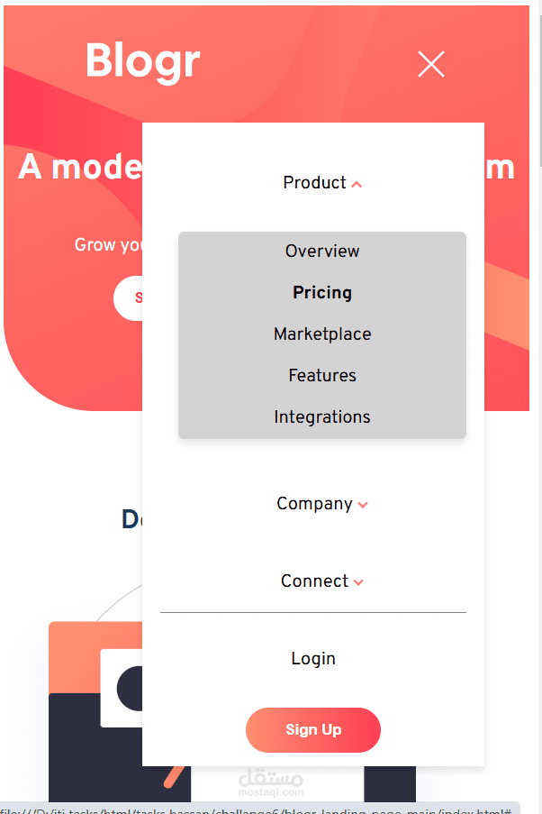 قمت بتصميم صفحه هبوط باستخدام HTML / CSS/JavaScript