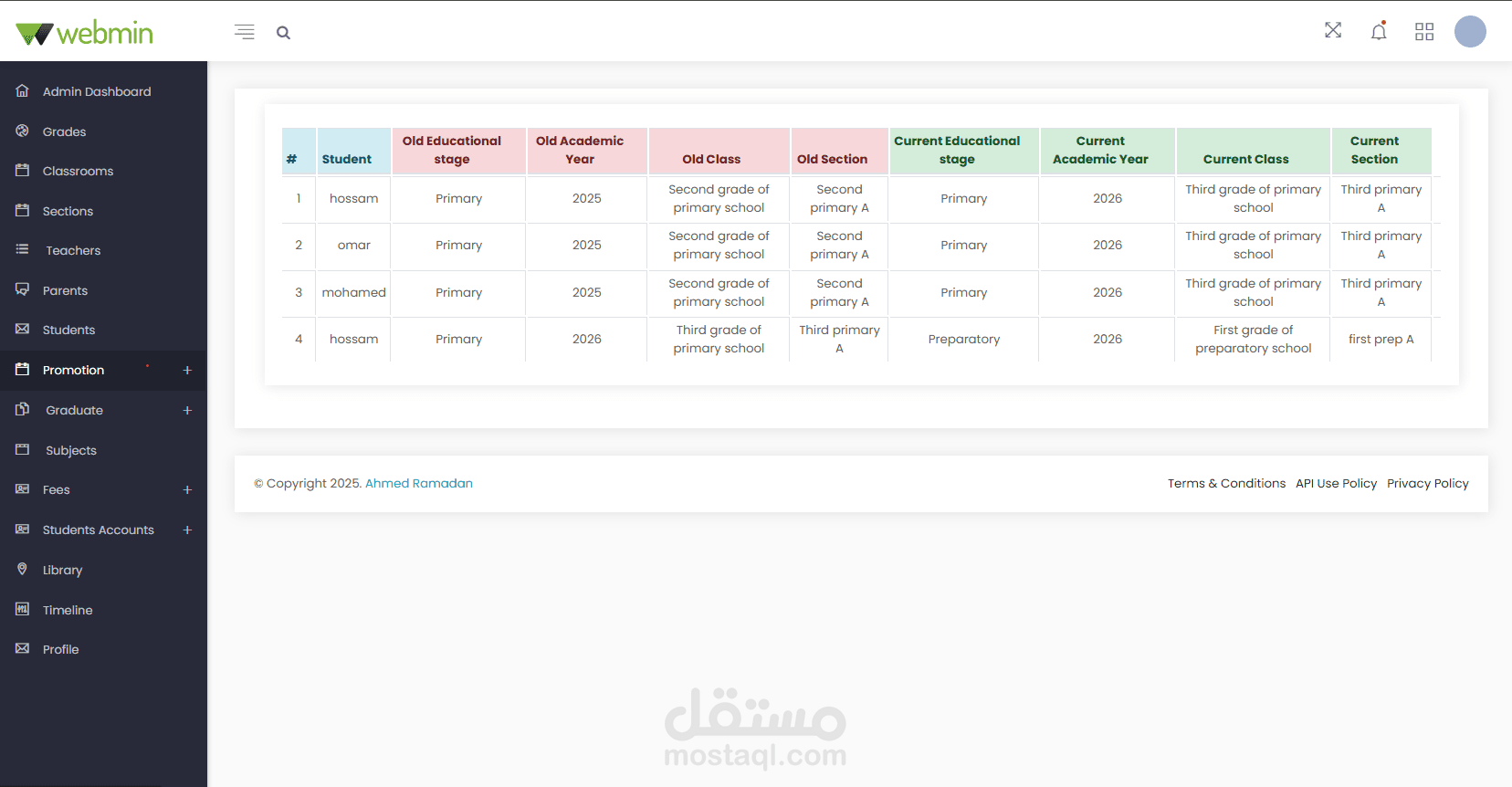 إنشاء وتحرير وإدارة ترقية الطلاب إلى المرحلة التالية بعد إعلان النتائج.