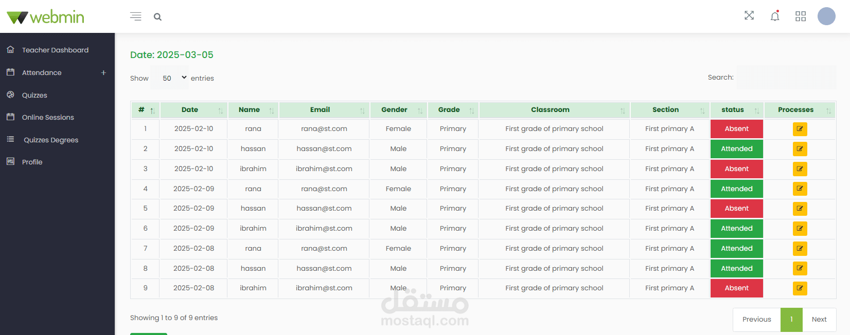 تسجيل وادارة الحضور والغياب للطلاب