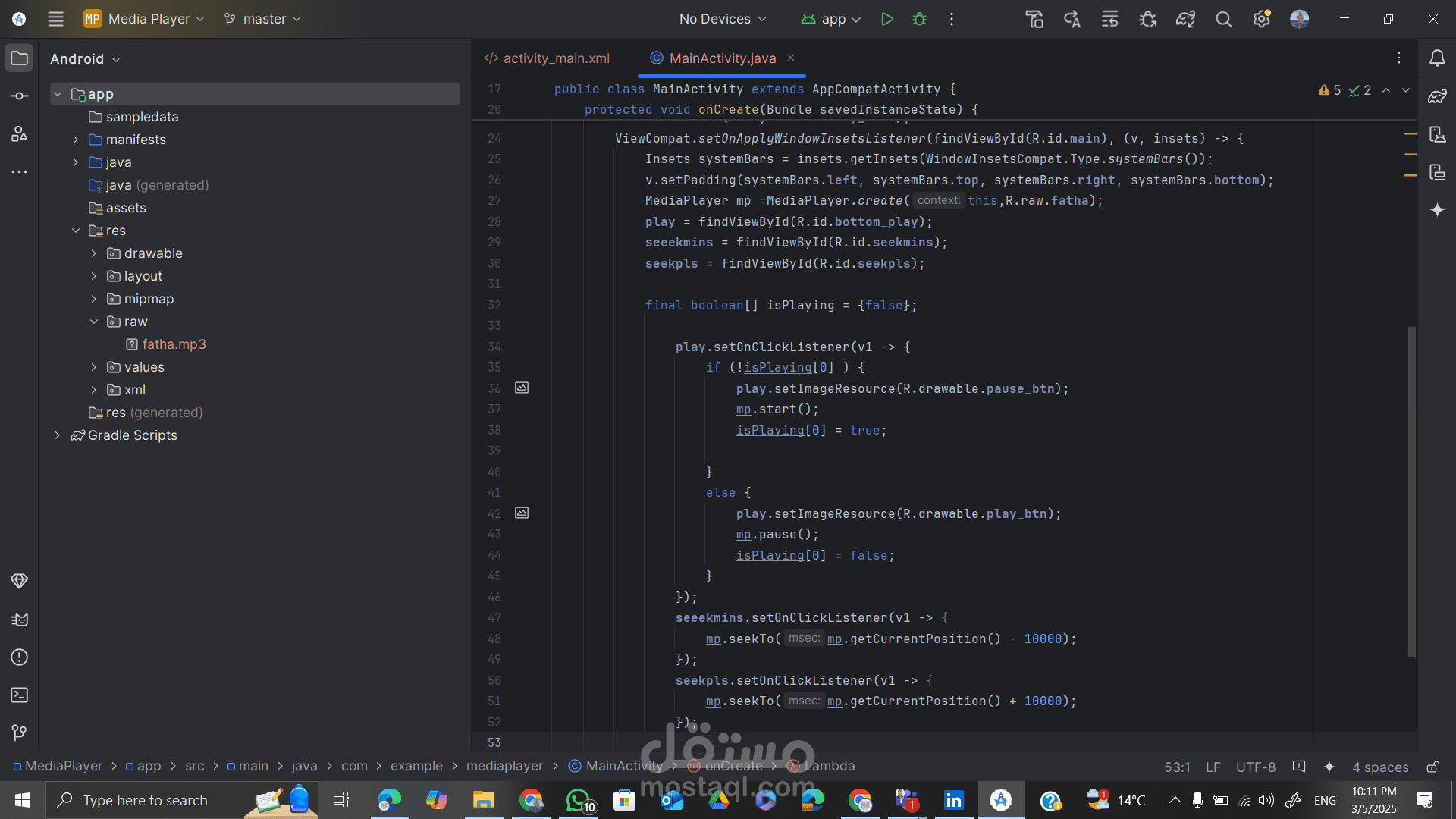 تطبيق بسيط لتشغيل الصوتيات مثل القرءان الكريم او ما شابه
