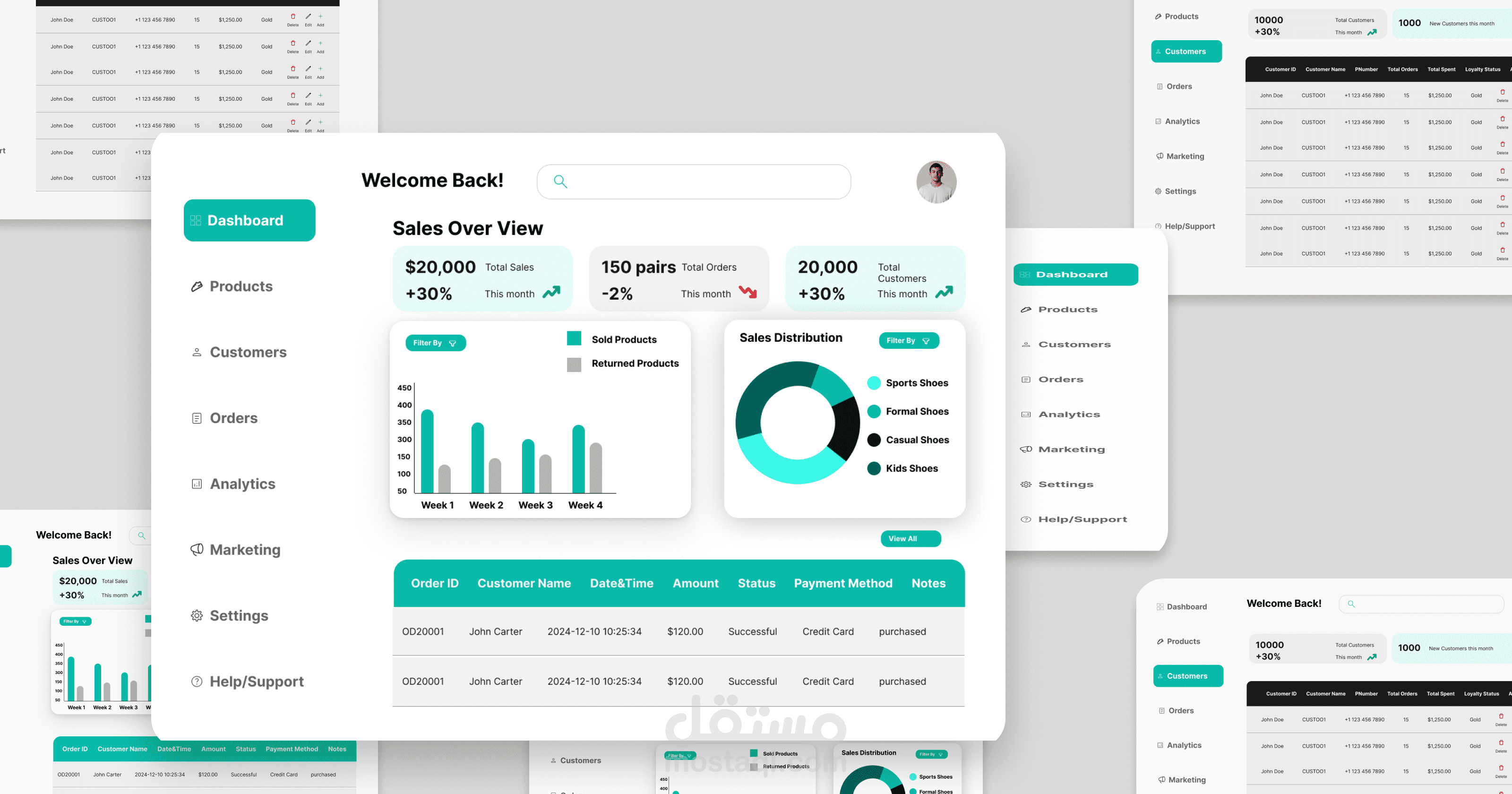 E-commerce Dashboard: يتابع المبيعات و الطلبات لتحسين الأداء وزيادة المبيعات.