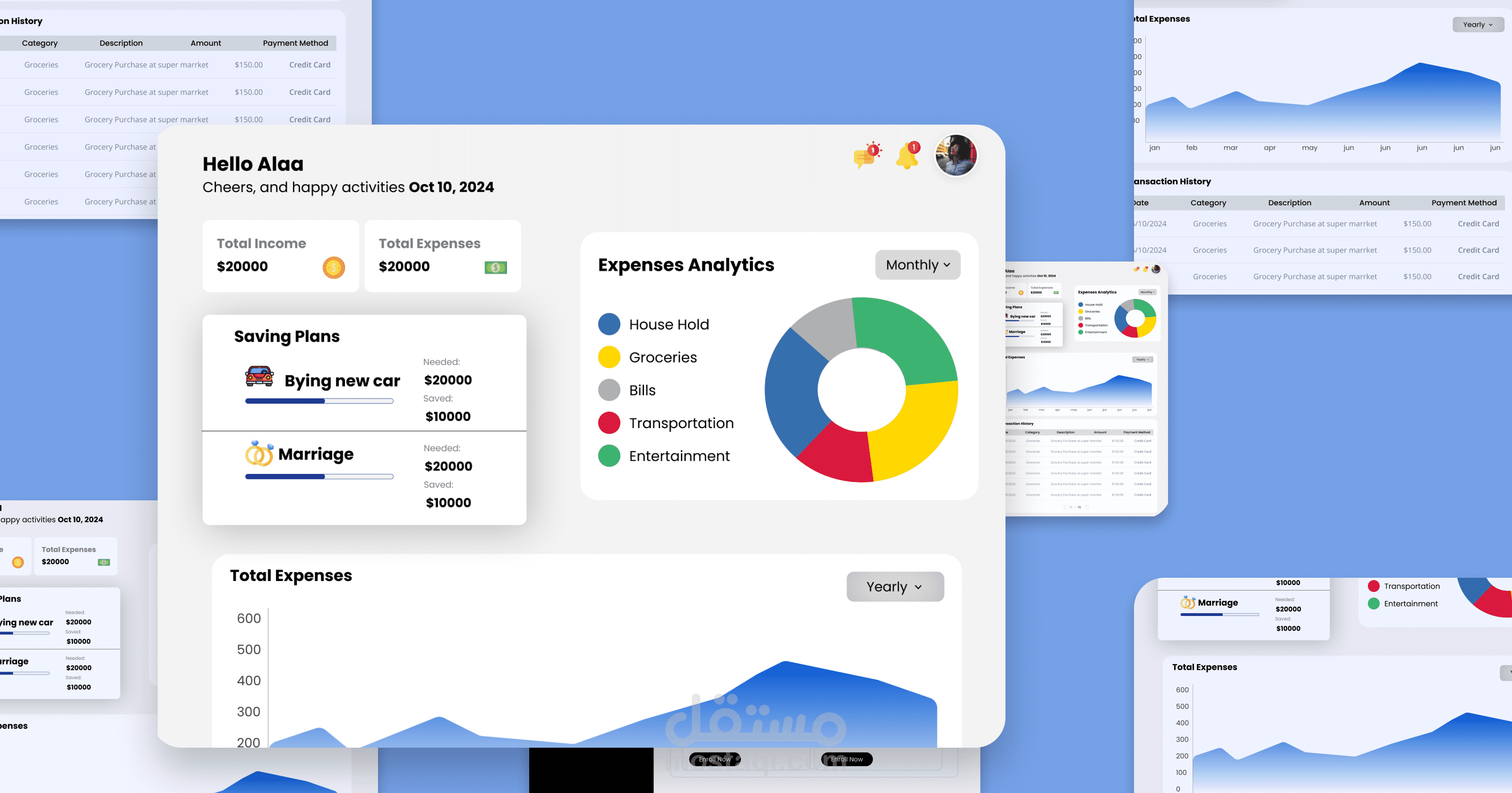 Financial Dashboard: يقدم نظرة شاملة على الإيرادات، المصروفات، والأرباح لدعم اتخاذ القرارات المالية.