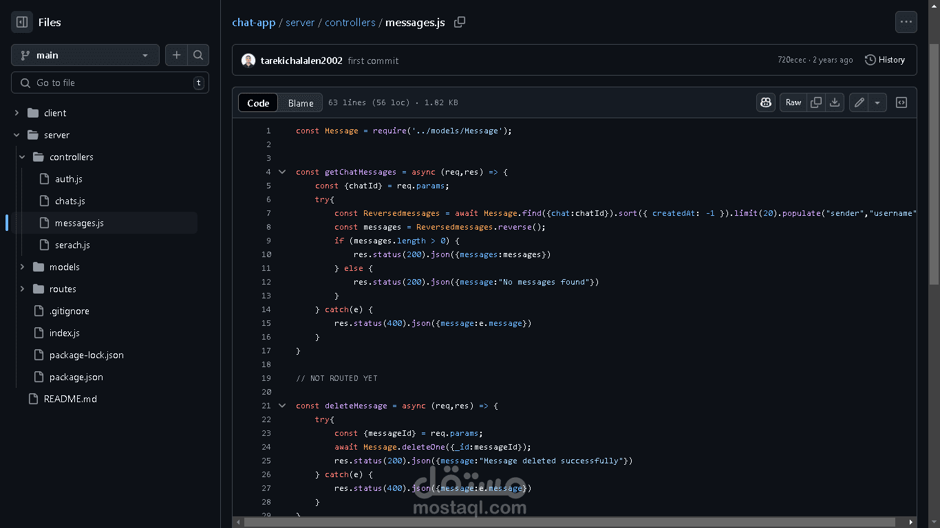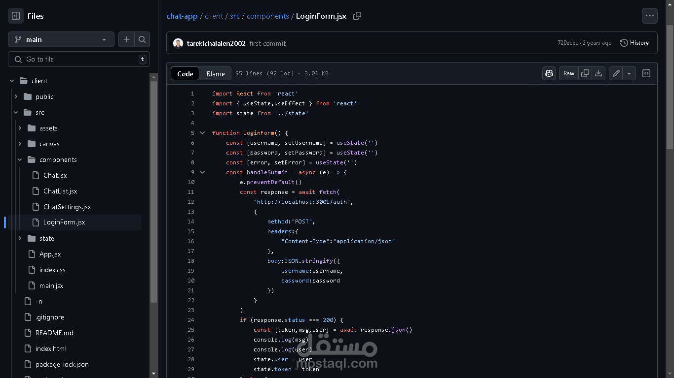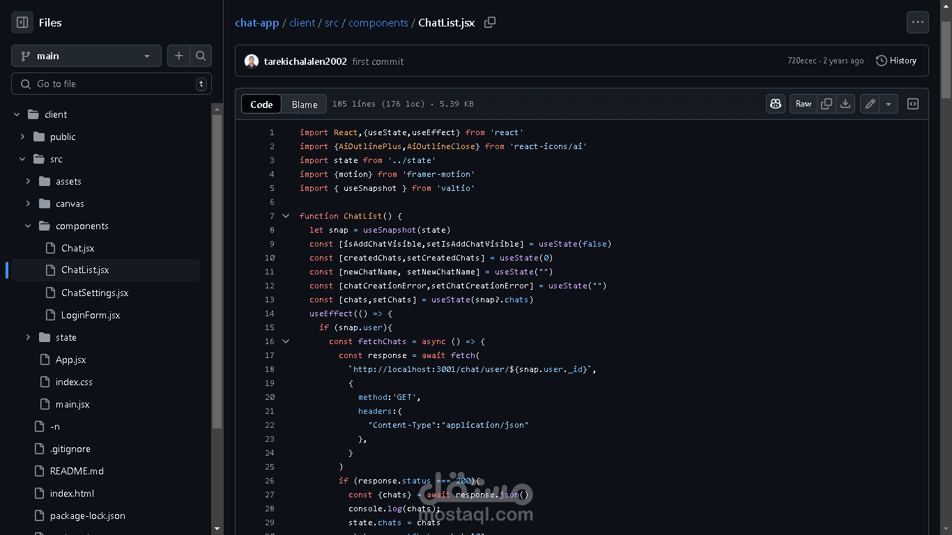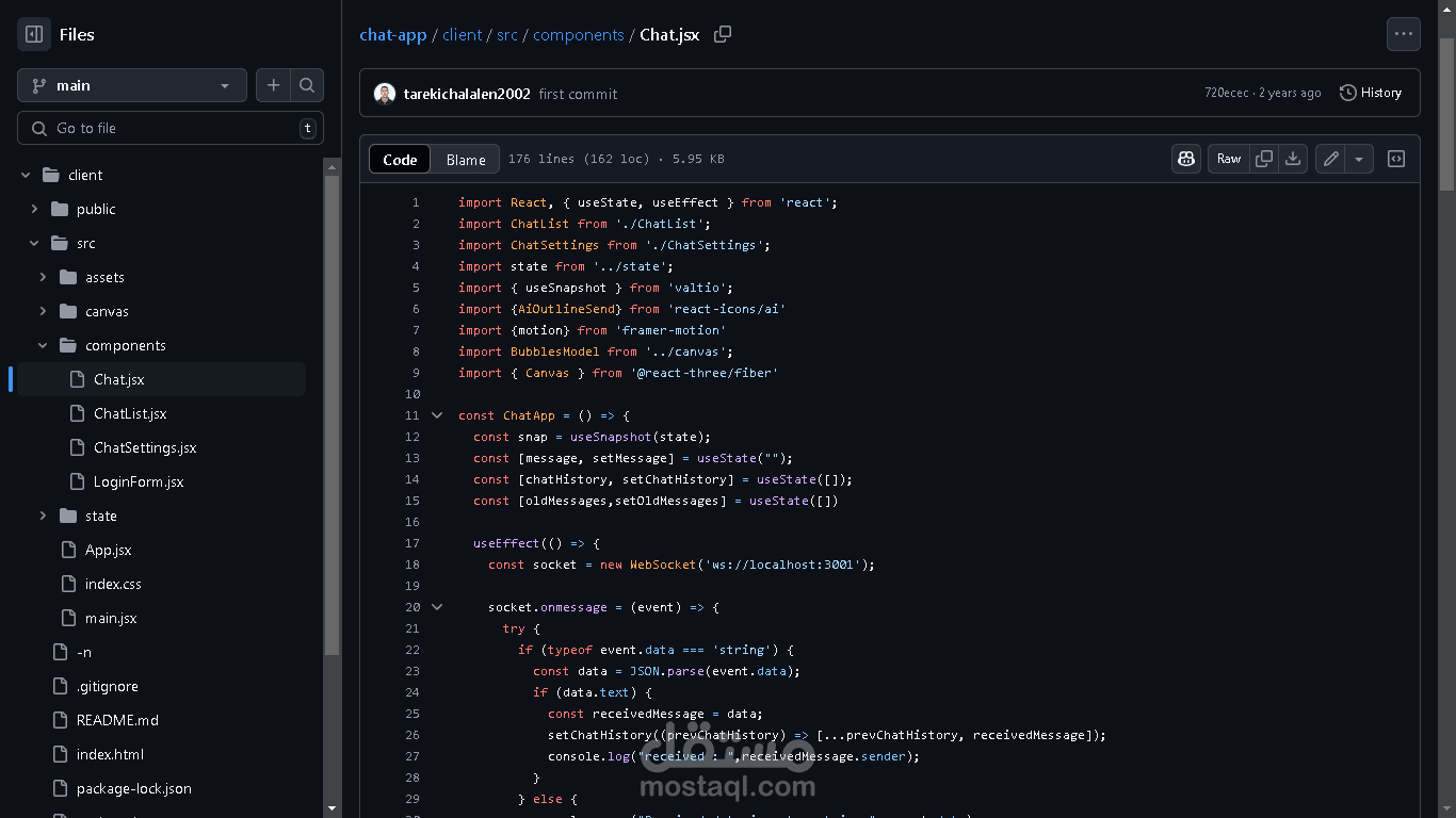 تطبيق دردشة في الوقت الحقيقي، تم إنشاؤه باستخدام Socket.io للتفاعلات الفورية عبر بروتوكول WebSocket، وتم تطوير الواجهة الأمامية باستخدام React وTailwind CSS.