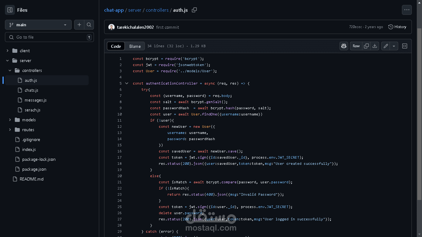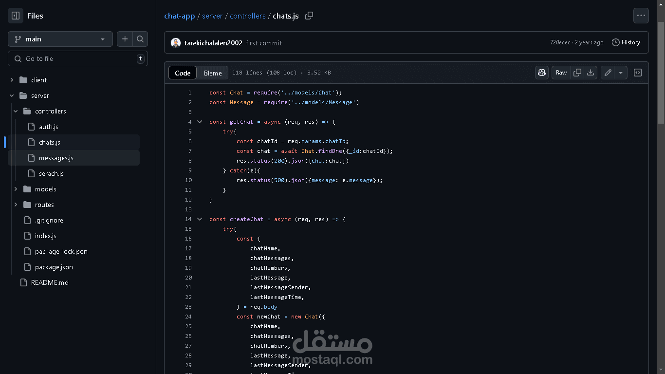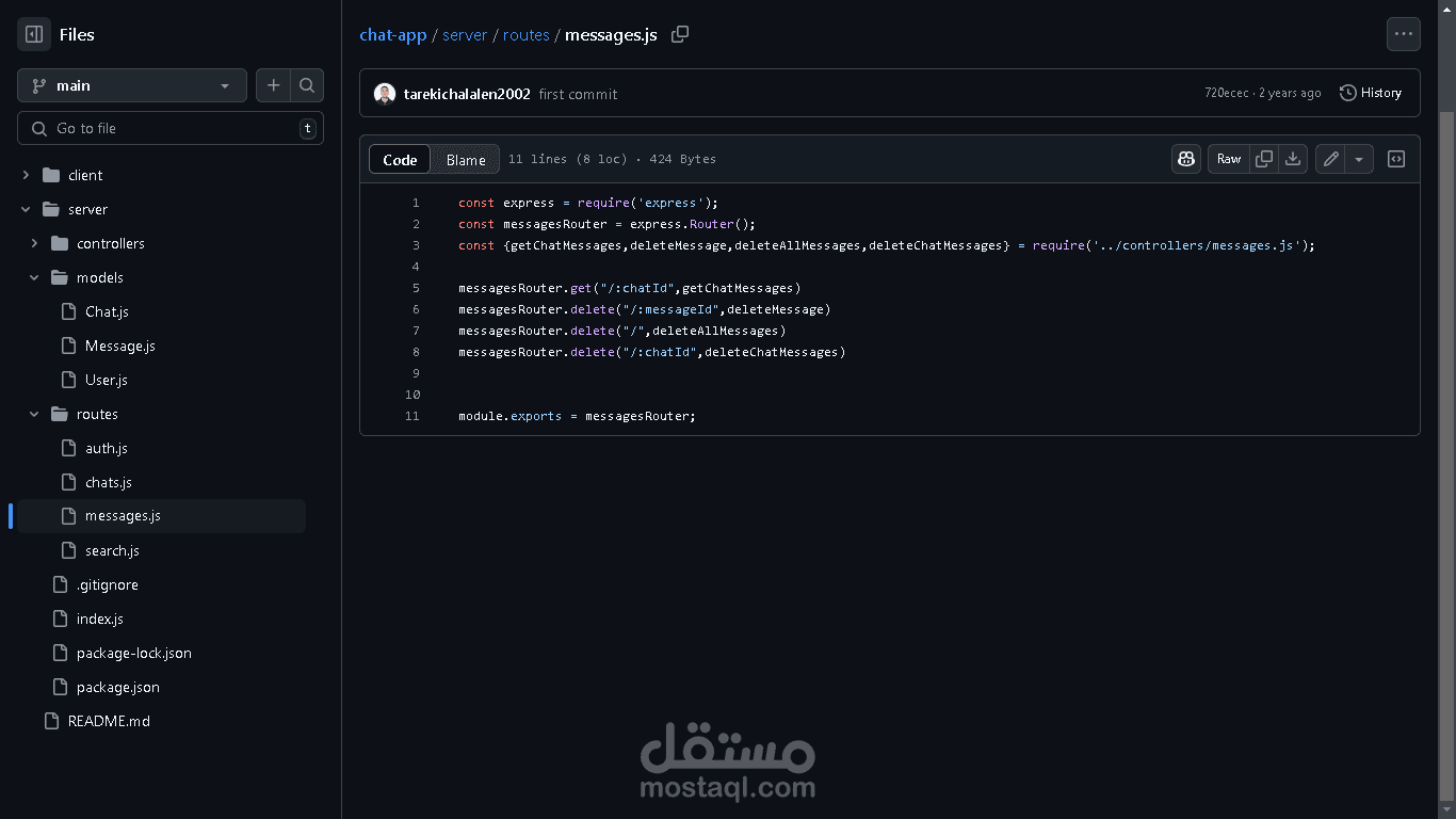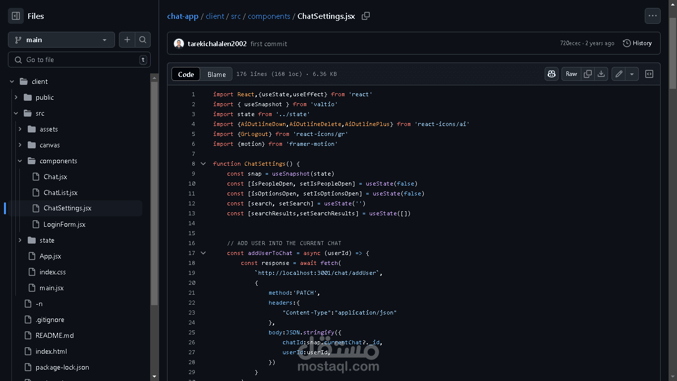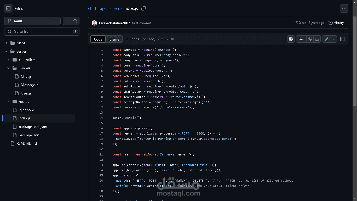 تطبيق دردشة في الوقت الحقيقي، تم إنشاؤه باستخدام Socket.io للتفاعلات الفورية عبر بروتوكول WebSocket، وتم تطوير الواجهة الأمامية باستخدام React وTailwind CSS.