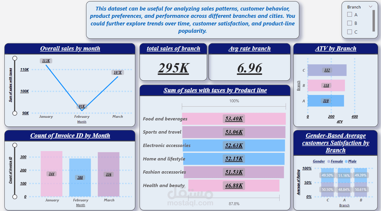 تحليل أداء الفروع المختلفة من حيث المبيعات، الإيرادات، والربحية.