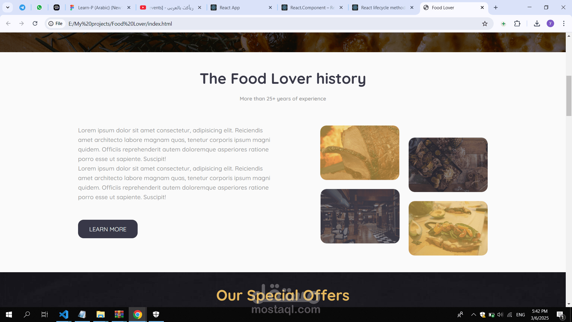 الصفحة الرئيسية: عرض وصفات مميزة، فئات الطعام، ومقالات عن الطهي. تصميم جذاب يركز على الصور.