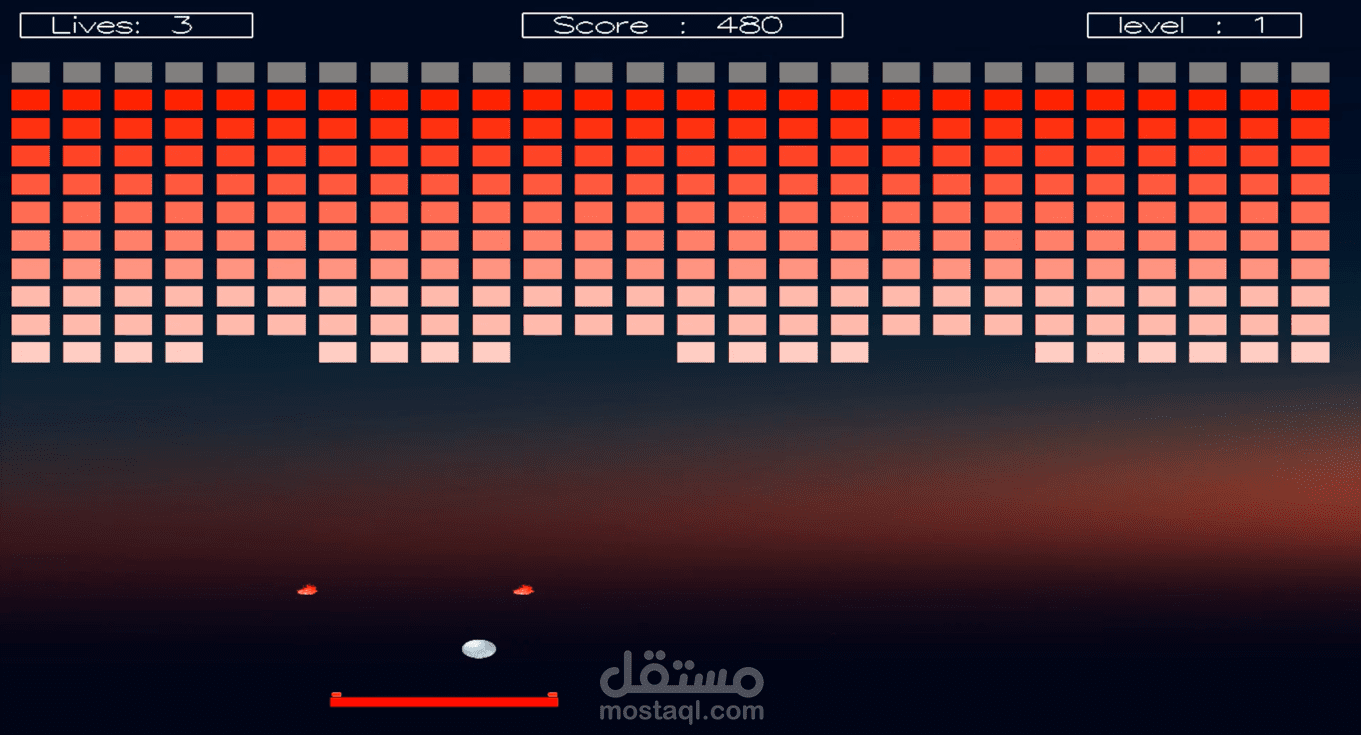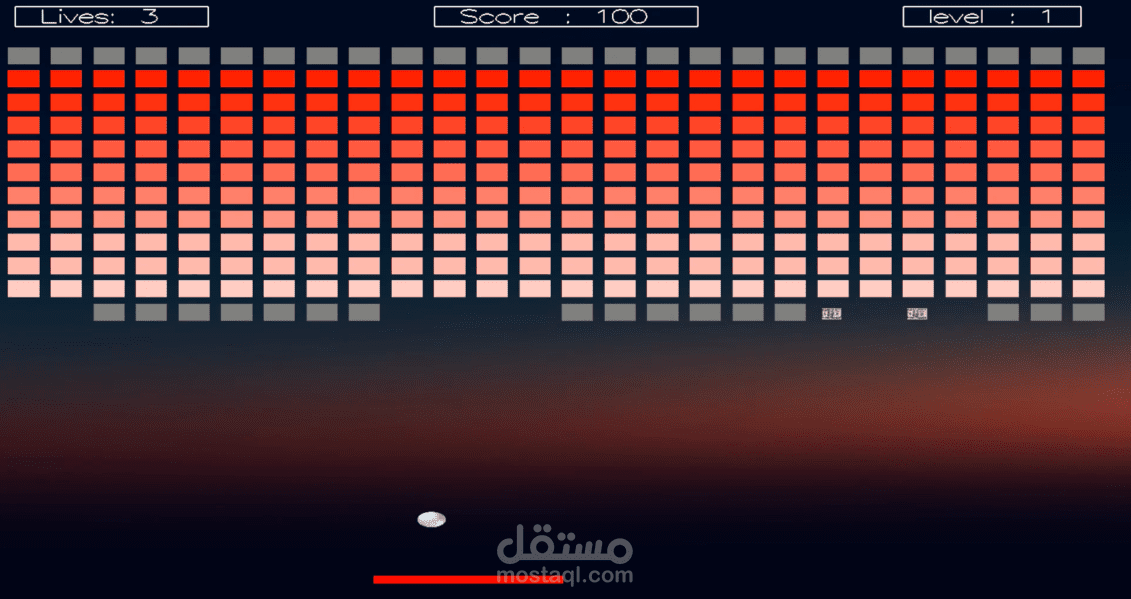 عند اصطدام الكرة بالطوب، يتحطم الطوب ويختفي، مما يمنح اللاعب نقاطًا.