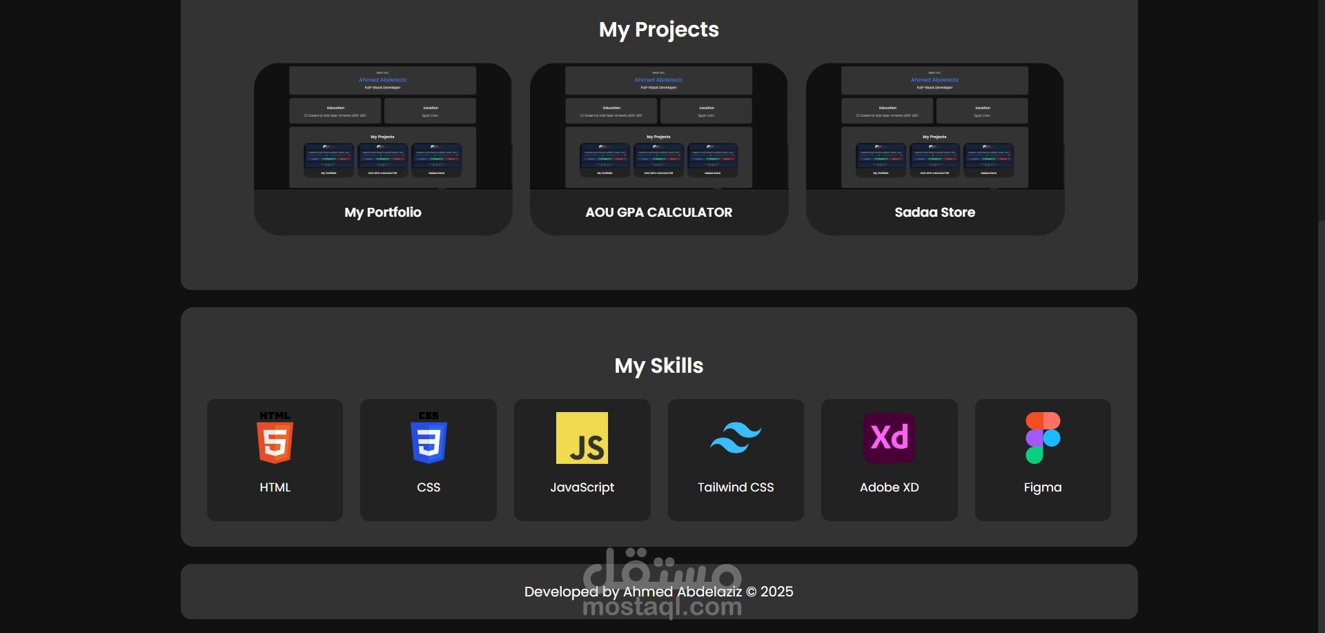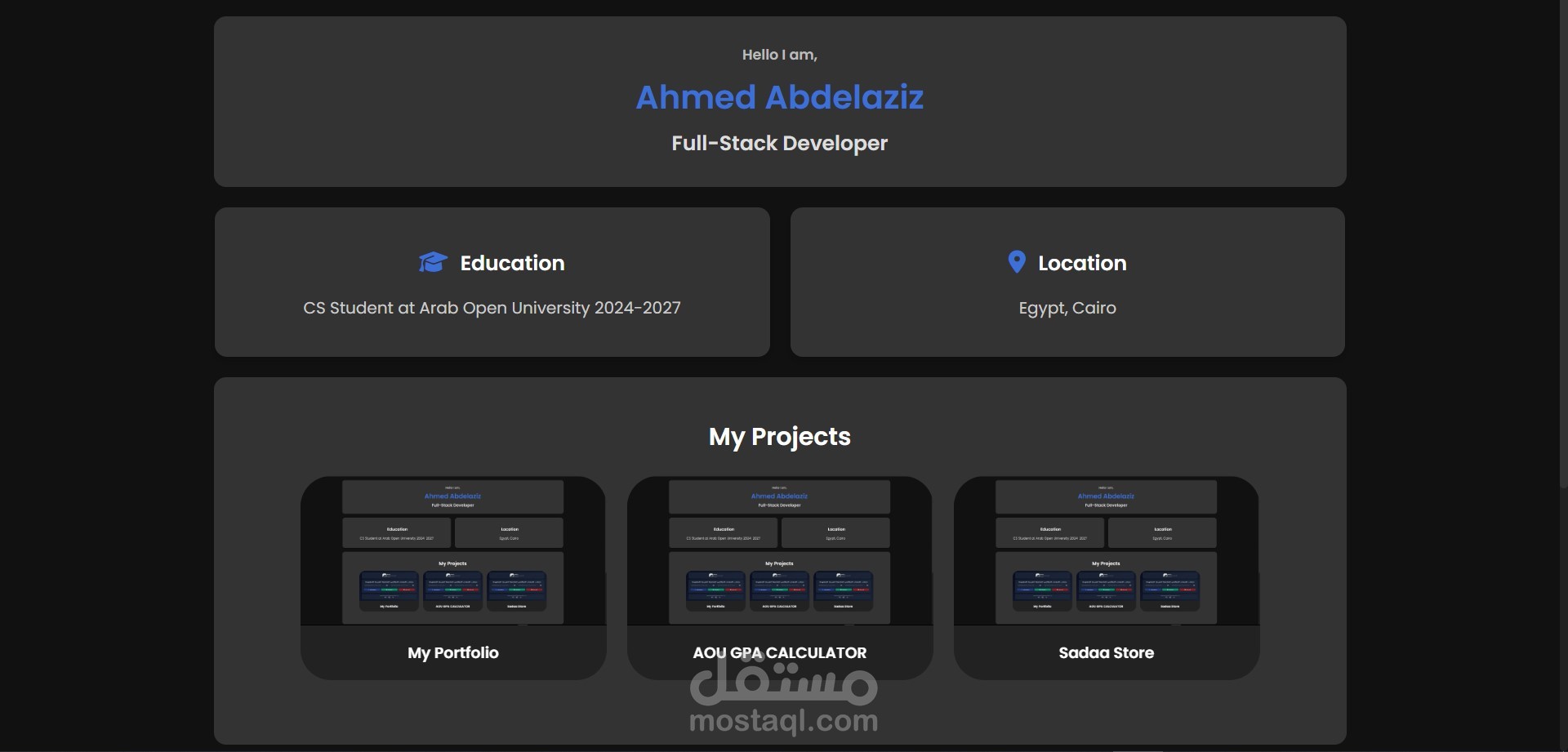 موقع ويب يعرض معلومات عني و بعض من مشاريعي و مهاراتي.