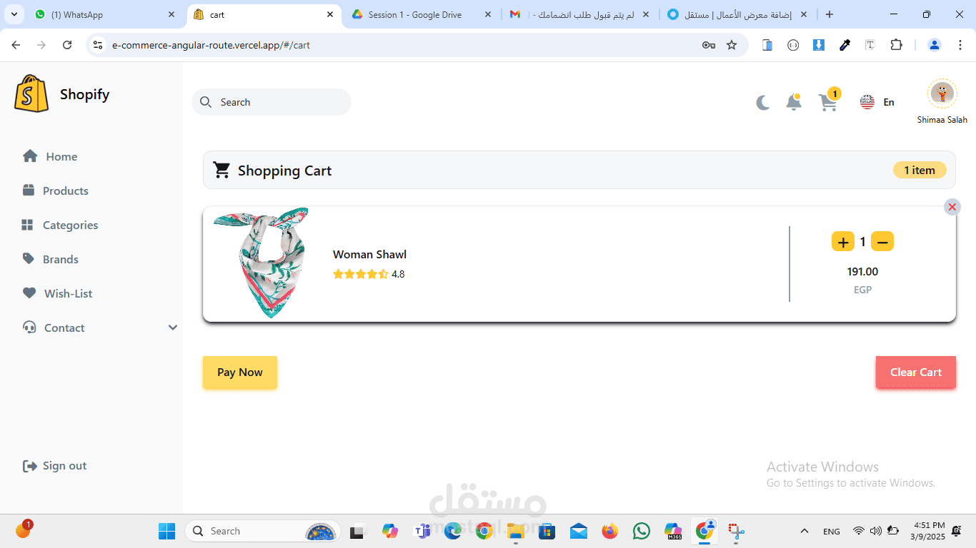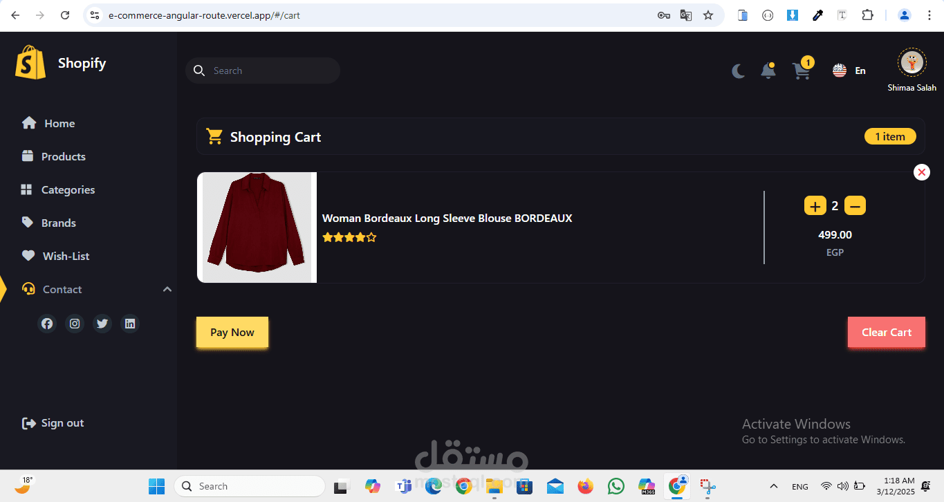 3. عربة التسوق: تسمح للعملاء بإضافة عناصر متعددة للشراء وعرض التكلفة الإجمالية وتعديل الكميات قبل المتابعة إلى الخروج.