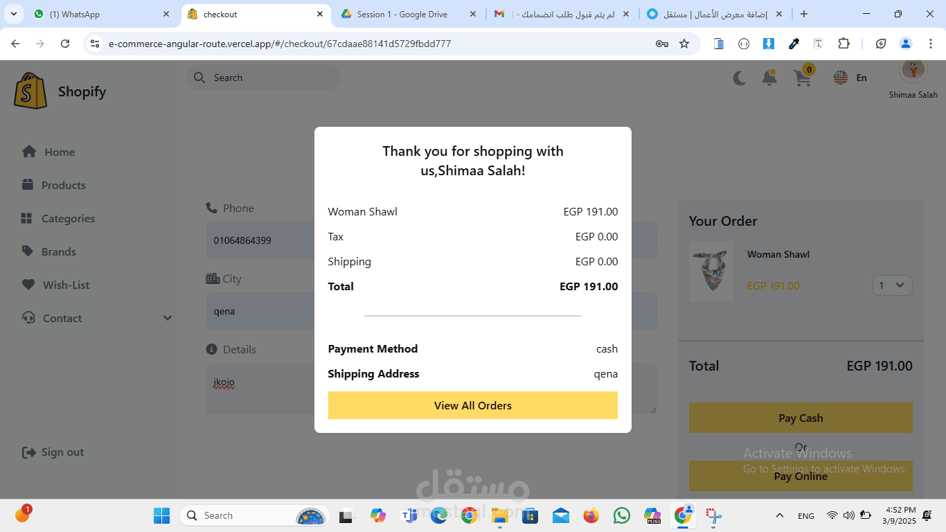 عملية مبسطة لإتمام عمليات الشراء، بما في ذلك إدخال عنوان الشحن وخيارات الدفع (بطاقات الائتمان/الخصم والمحافظ الرقمية وما إلى ذلك) وتأكيد الطلب.