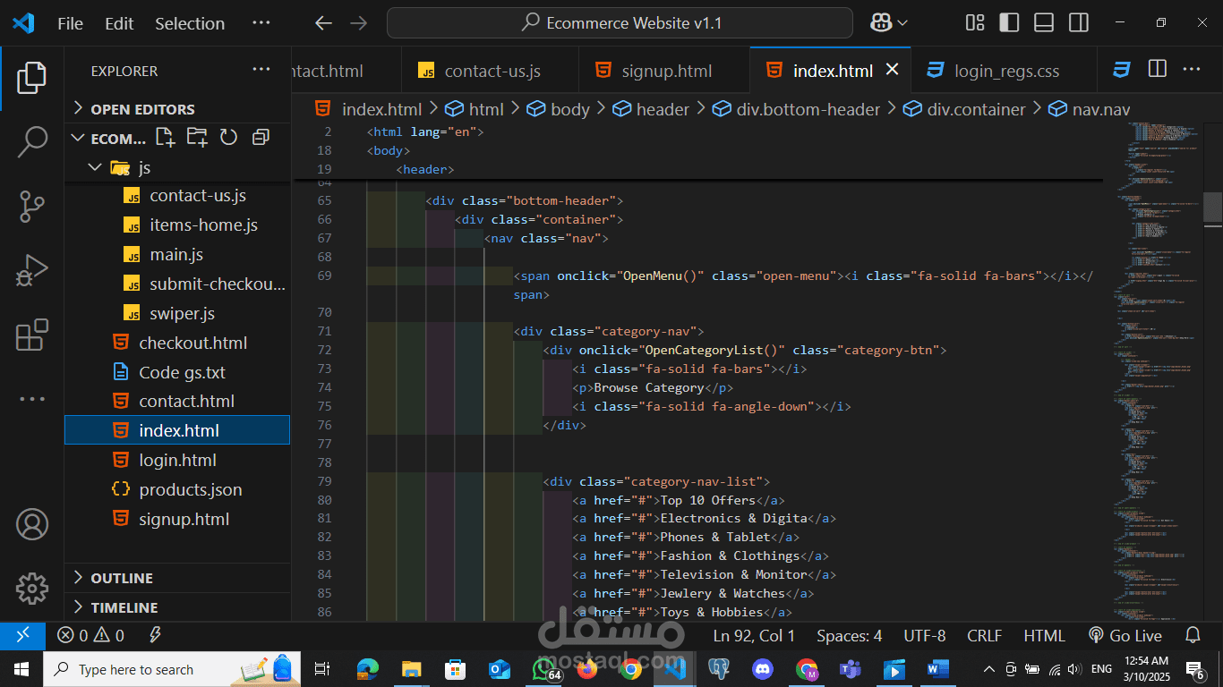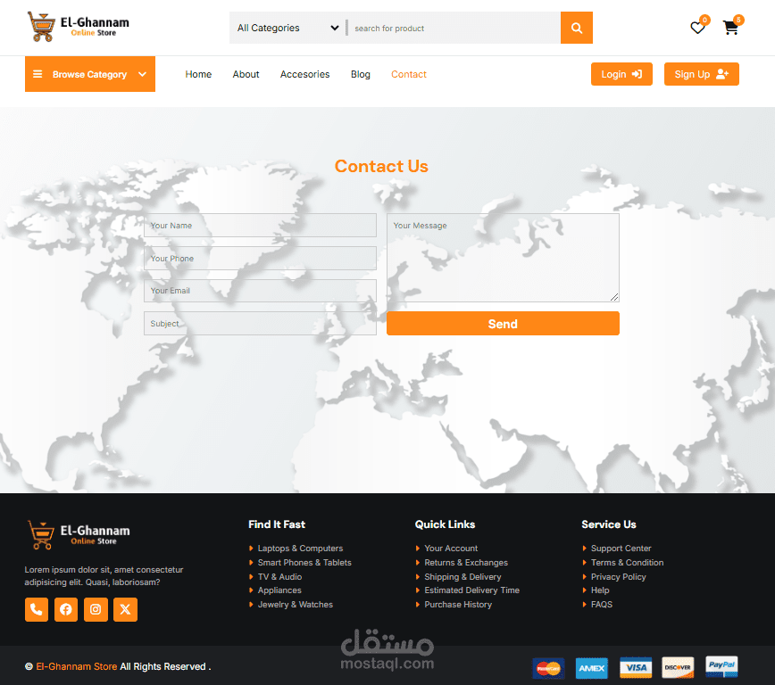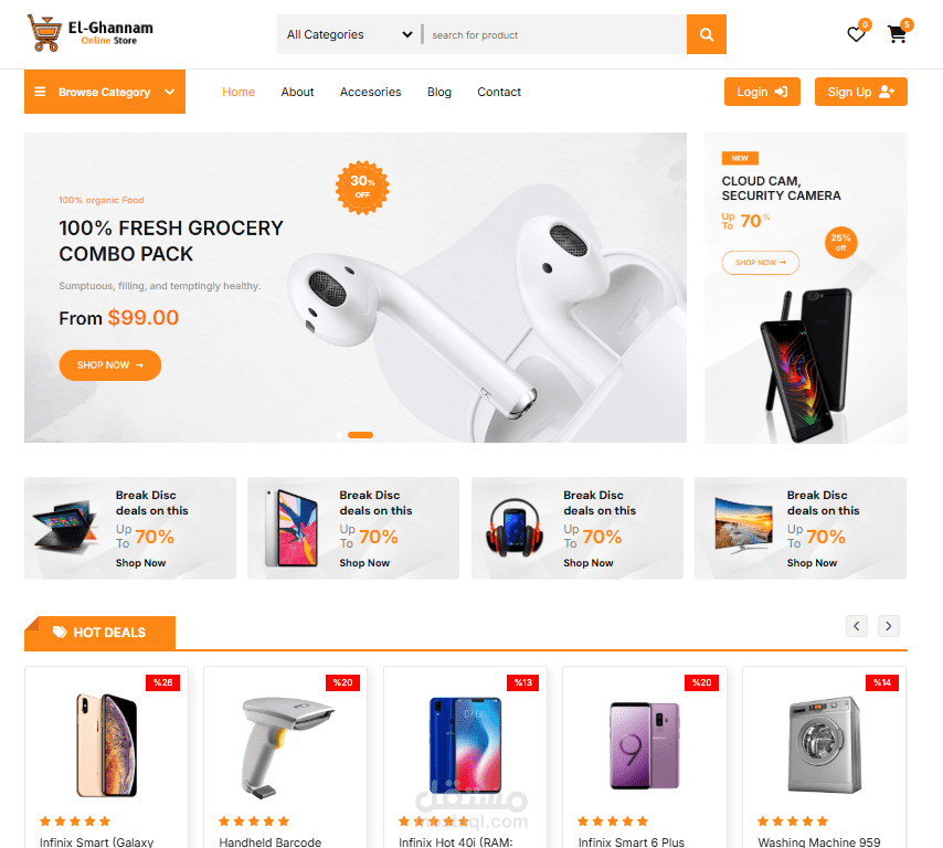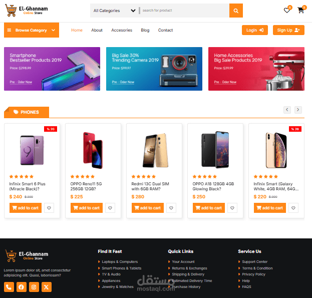 متجر الكترونى باستخدام (html , css , java script) يحتوي علي :