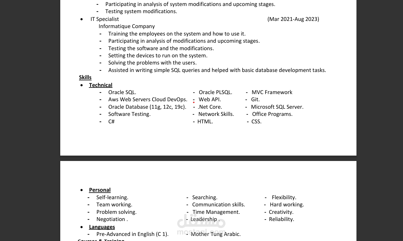 تصميم بسيط وأنيق يعكس الخبرات والمهارات بشكل واضح.