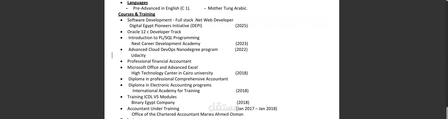 تنسيق نظيف وجذاب يجعل السيرة الذاتية سهلة القراءة.