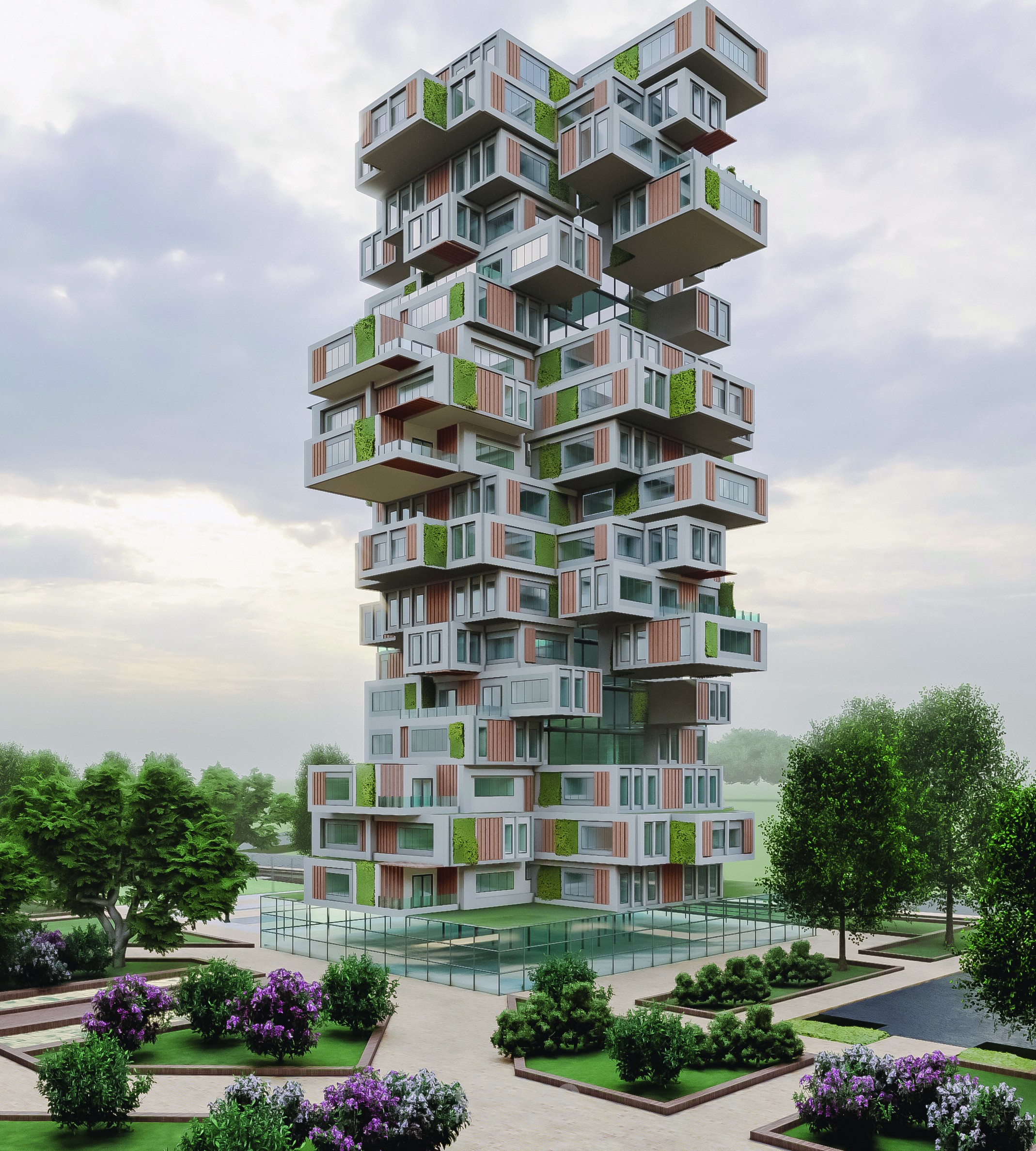 هو برج سكني بيئي يحوي على عدة انواع من الشقق الكبيرة والصغيرة والدوبلكس مع تحقيق معايير الخصوصية والامان في السكن