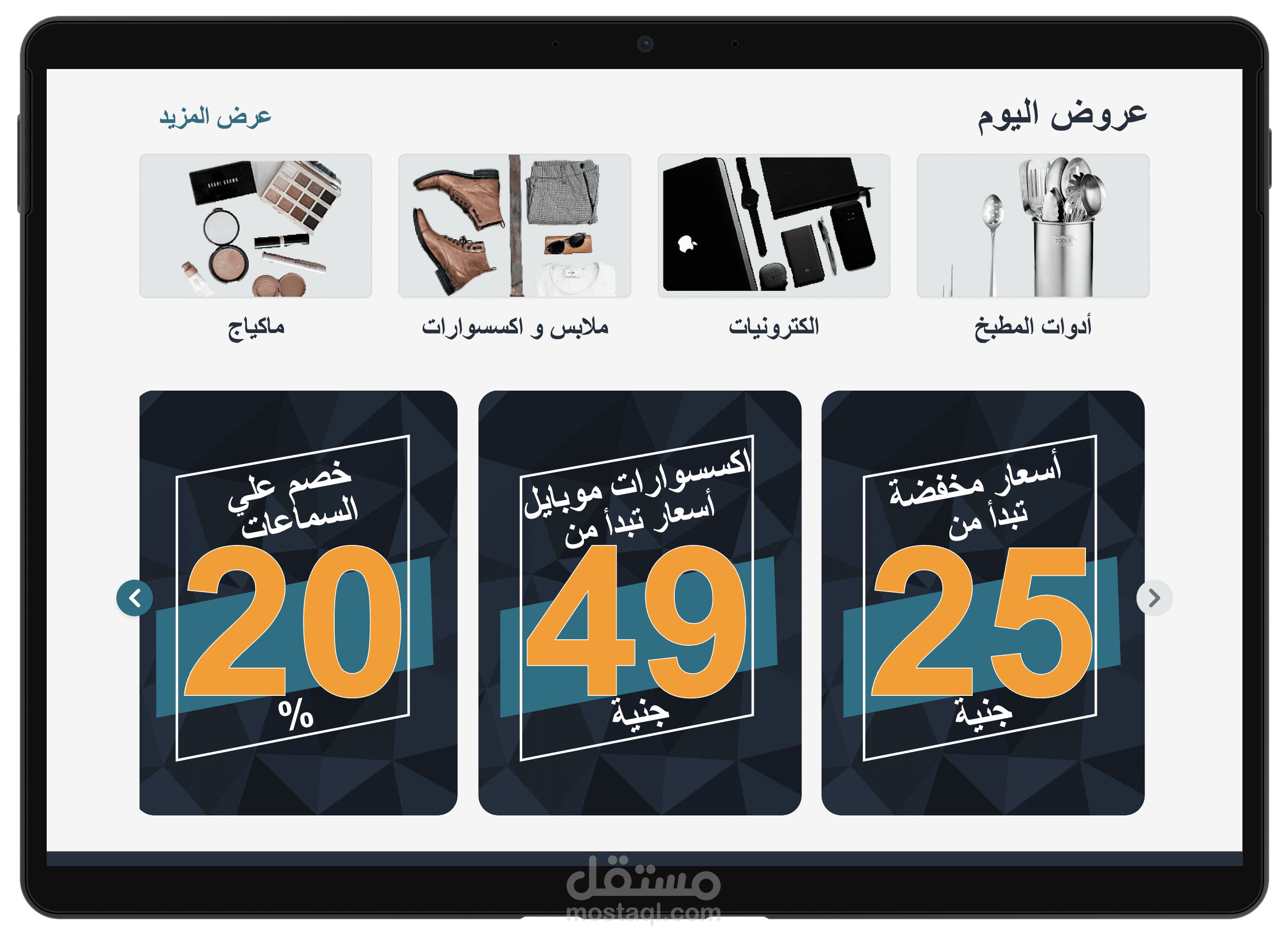 * **عروض خاصة وخصومات:** تخصيص قسم بارز لعرض العروض الخاصة والخصومات اليومية، مع مؤقت تنازلي لإضفاء شعور بالإلحاح.