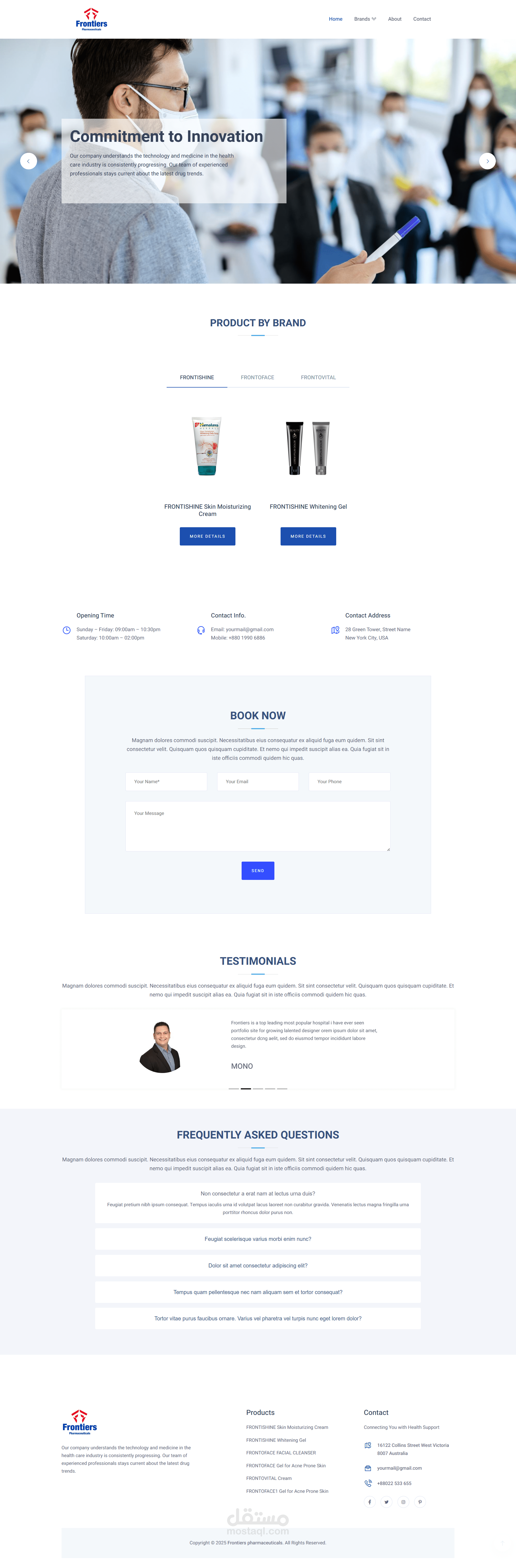 - يحتوي الموقع على صفحات الاساسية (الرئيسية - المنتجات - تفاصيل المنتج - عن الشركة - التواصل - الاسئلة الشائعة - فريق العمل )
