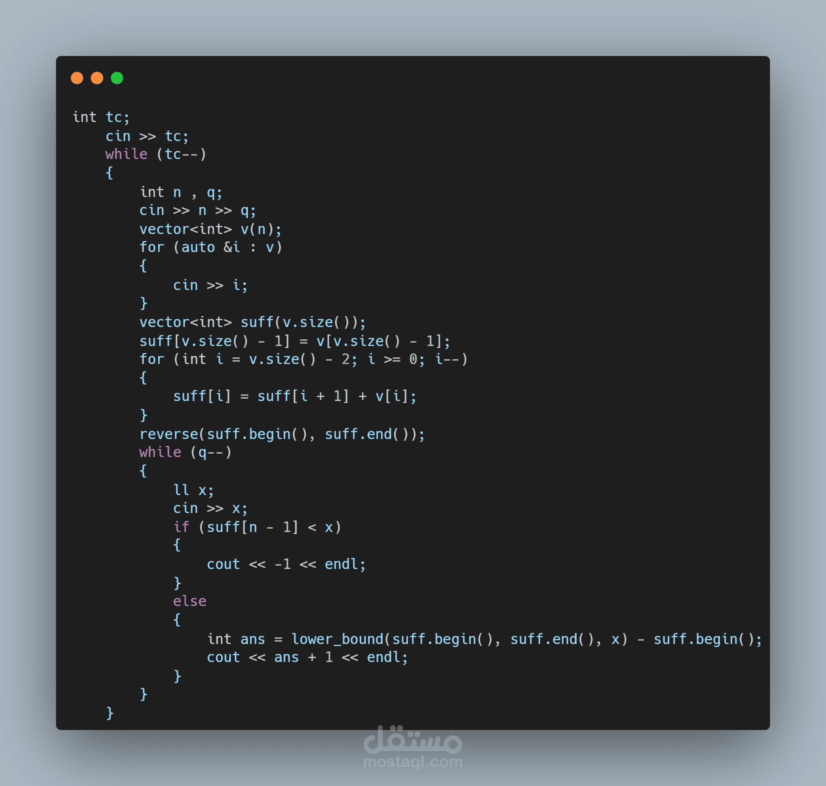 حل مسائل برمجة بلغة C++ مع شرح المسألة و ارسال صوره للكود مع توضيح بتعليقات