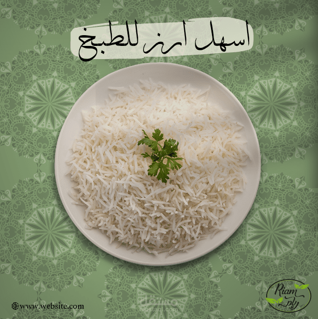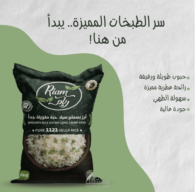 هذا التصميم مخصص لأرز بسمتي حيث يظهر مميزات هذا الارز وكذلك يروج للمنتج