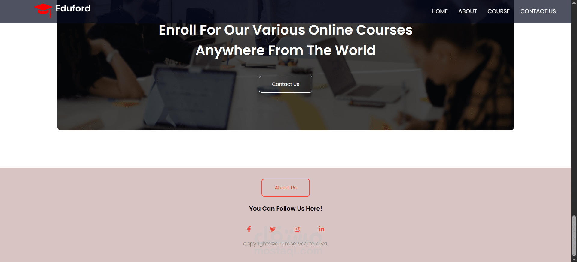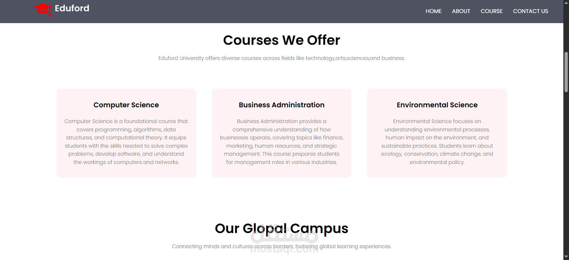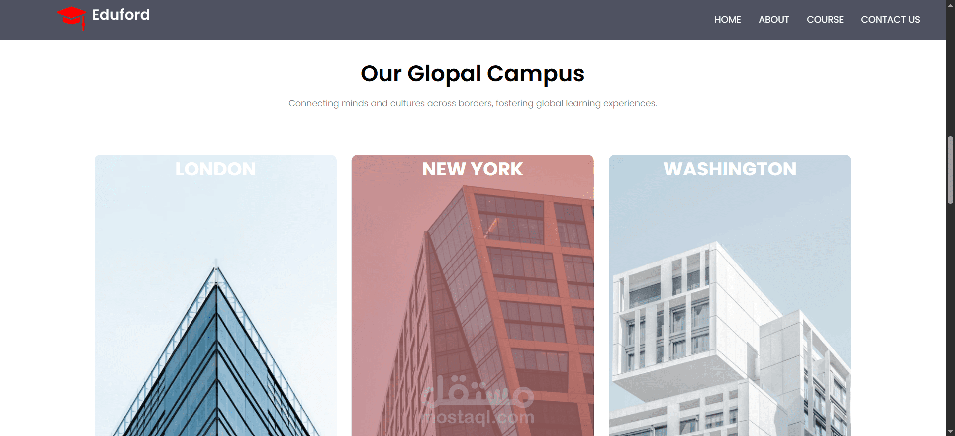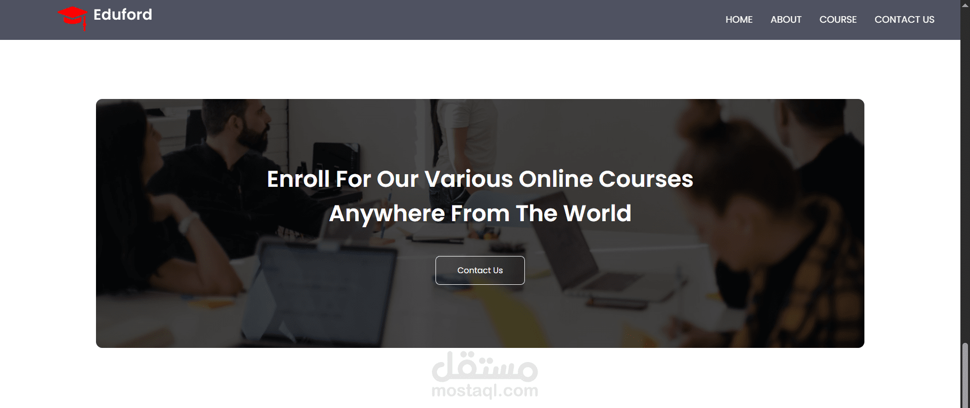 Eduford University هو موقع ويب تفاعلي يعرض معلومات عن الجامعة بطريقة أنيقة ومنظمة. يهدف الموقع إلى تقديم تجربة مستخدم سلسة مع تصميم حديث يعكس هوية المؤسسة التعليمية.