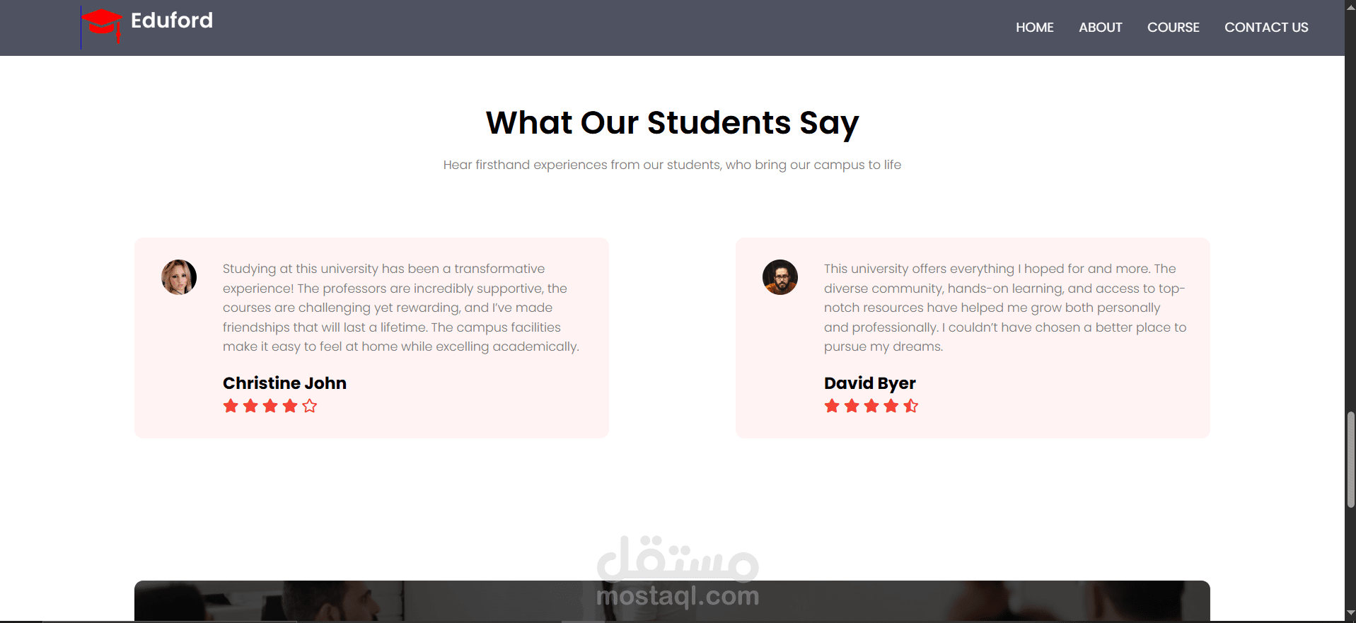 الشهادات (Testimonials): آراء الطلاب حول تجربة التعلم في الجامعة.