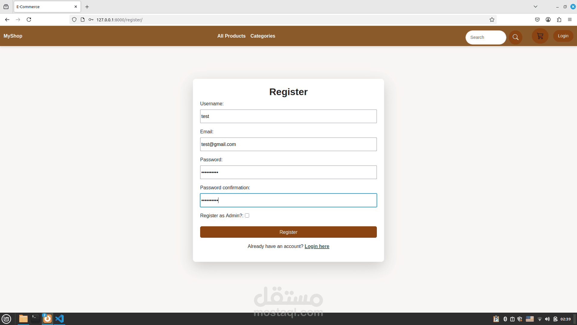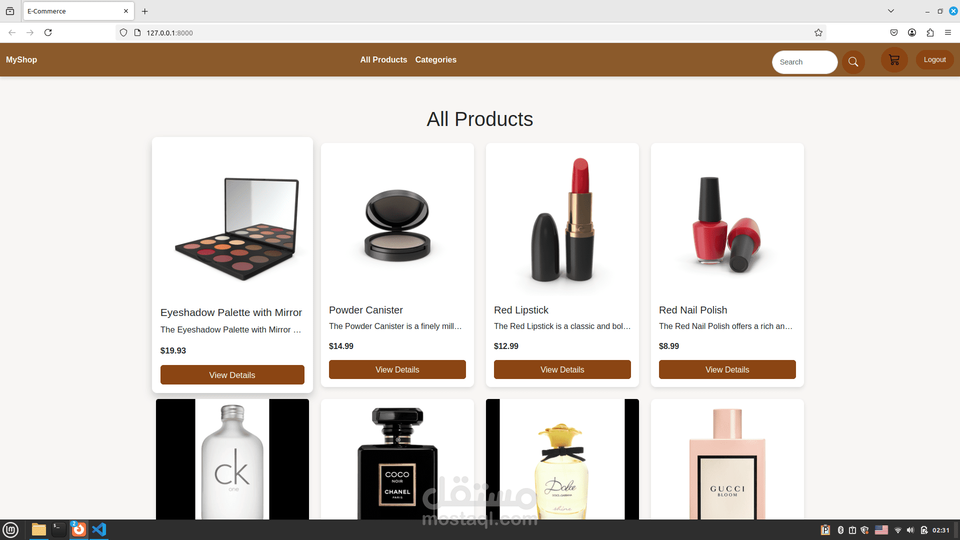 قمت بتطوير موقع تجارة إلكترونية (E-commerce) باستخدام Django. الموقع يشمل: