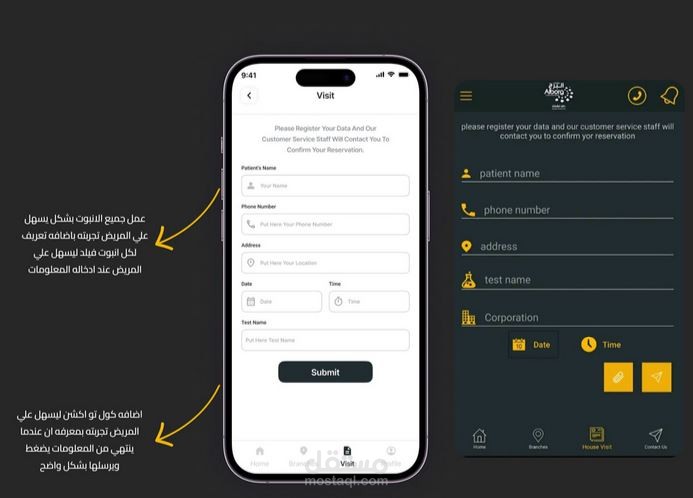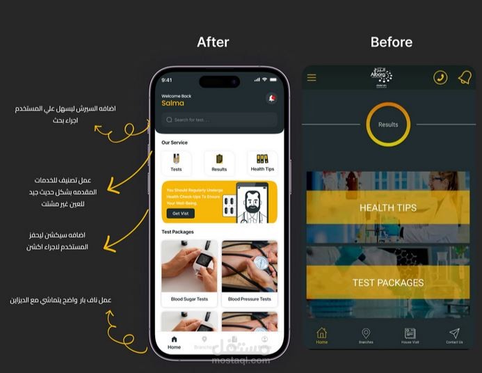 اعاده تصميم تطبيق معمل البرج للتحاليل الطبيه قمت في هذا التصميم بتطبيق مباءئ التصميم وجعل التصميم مريح للعين و وجود سهوله استخدام