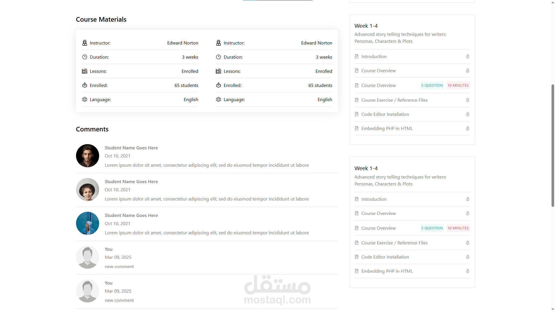 عرض المستندات الخاصه بالكورس