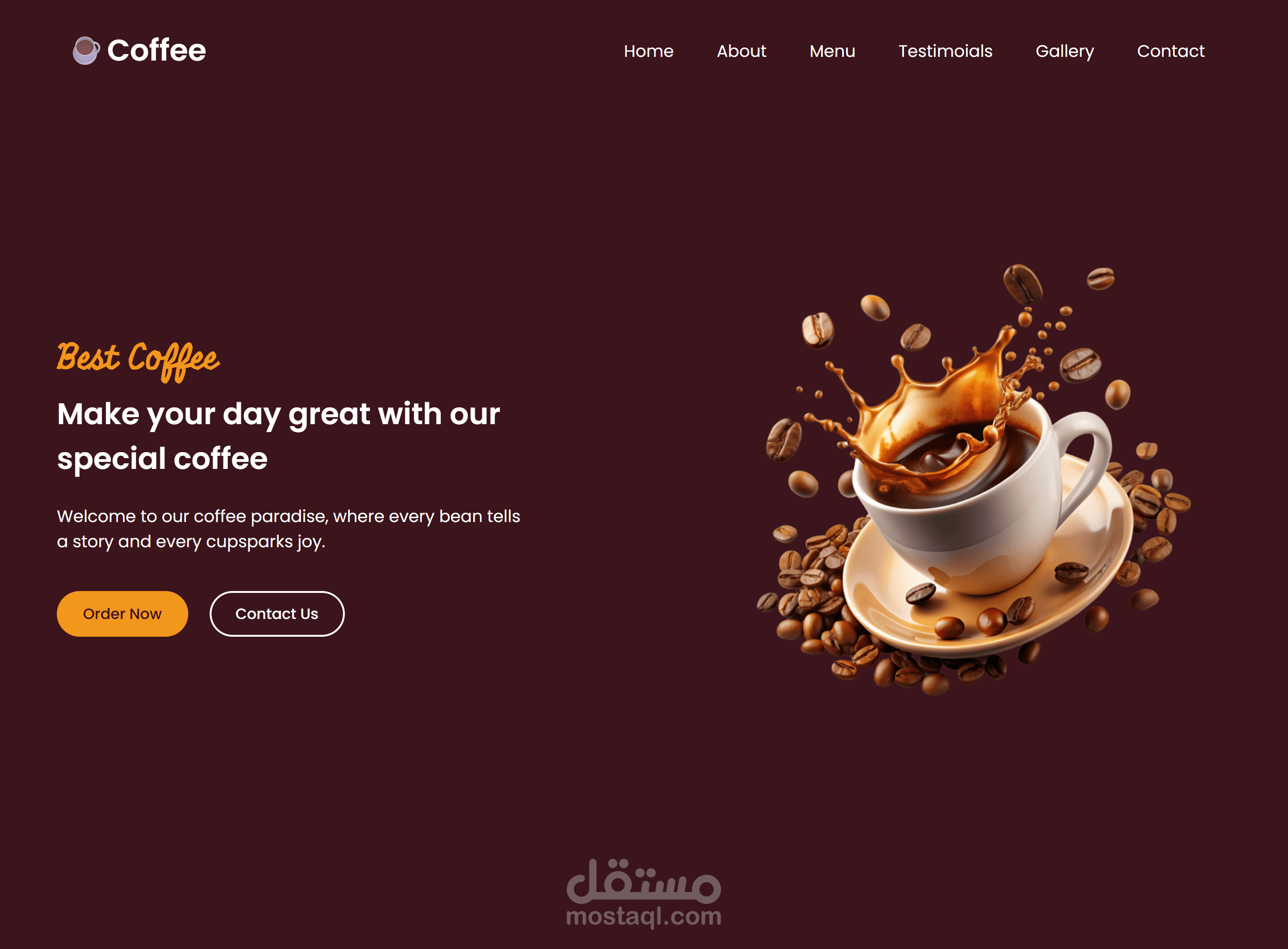 موقع عصري ومتجاوب بالكامل، صُمم لعرض جمال وأناقة الكافيه بشكل احترافي وجذاب.